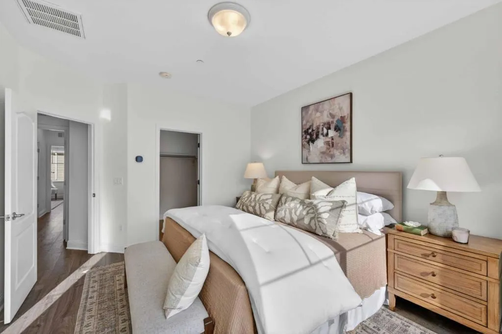 Welcome to 18519 Poppy Jasper Lane in beautiful Morgan Hill. This exceptional, fully turnkey townhome blends modern style with an efficiently designed open floor plan, offering comfort, functionality, and an ideal location. Visitors are welcomed by a spacious living room with soaring ceilings and an abundance of natural light. The well appointed chef's kitchen features white cabinets, quartz countertops, gleaming stainless steel appliances and plenty of storage. Upstairs, the primary suite serves as a private retreat with a walk-in closet and a beautifully designed bathroom featuring contemporary countertops, dual sinks, white cabinetry, and a large soaking tub. Two additional bedrooms provide flexibility for family, guests, or a home office setup. Move-in ready with fresh interior paint and new flooring throughout. A 2 car garage with an expansive storage area. The Madrone Plaza community offers numerous amenities including a reservable clubhouse, outdoor BBQ area, pool and spa, children's play area, expansive lawn area, bocce ball court and a full basketball court perfect for an active and social lifestyle. Close to commute alternatives and less than a mile from highway 101. Close to Lawson's Bakery, vibrant downtown Morgan Hill, hiking, biking, golf courses and the wine trail.