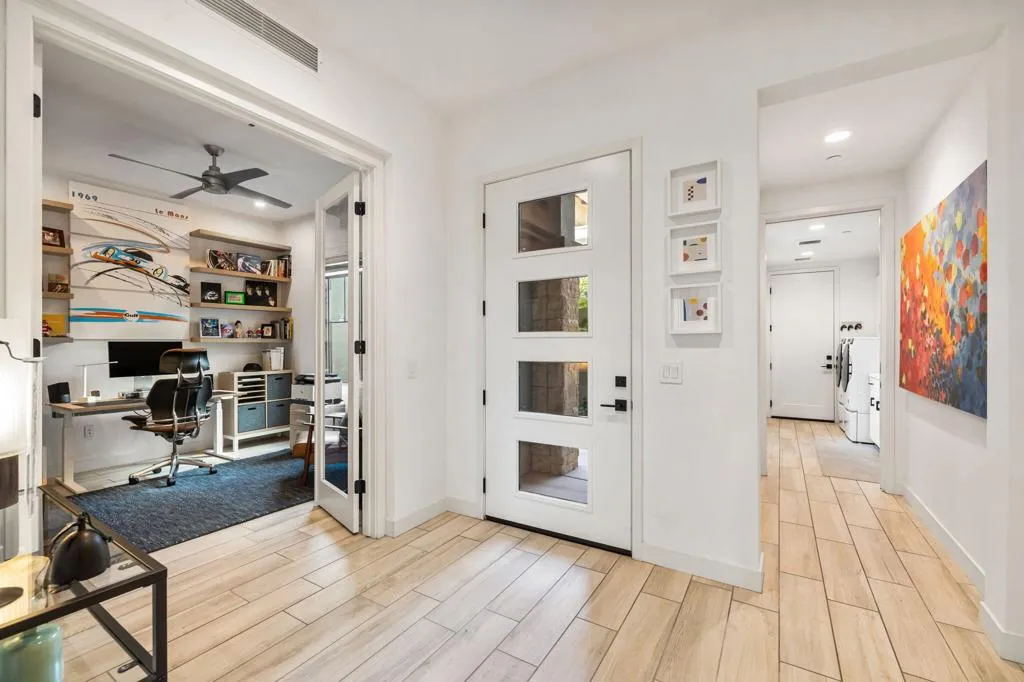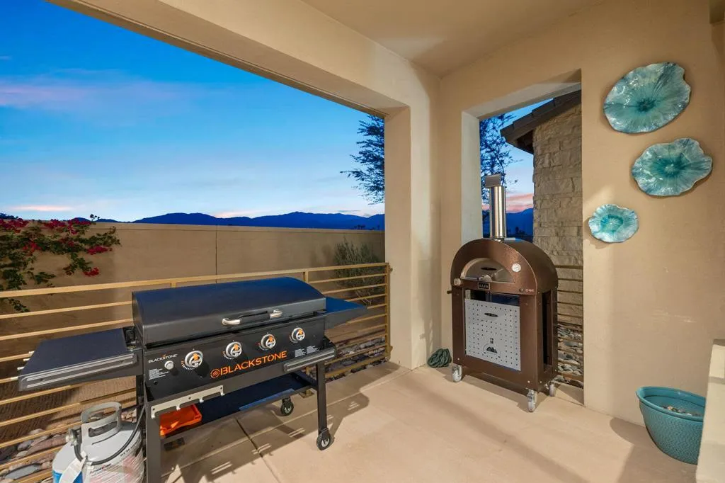 Enjoy magnificent views and privacy at The Retreat at Desert Willow. Step inside and you'reimmediately WOWED by the panoramic south-facing Santa Rosa Mountain views, a truedefinition of desert luxury. Morning coffee and evening cocktails on the private patio comewith an endless skyline backdrop. This beautifully customized Plan 1 (Sanctuary) offers two bedrooms, a den/office, and two and a half bathrooms. The great room features an open-concept design with high ceilings, 8' doors, and extensive recessed lighting. The gourmet kitchen showcases custom cabinetry, quartz countertops, an oversized island, updatedplumbing and lighting fixtures, a Bosch appliance suite, Samsung Bespoke refrigerator,Zephyr vent hood, and a walk-in pantry. The dining area flows seamlessly to the expandedpatio for ideal indoor-outdoor living. Upgrades include custom automatic blinds, Totowashlets, warm modern finishes, and exceptional detail throughout. The spacious primarysuite offers patio access and a spa-style bath with double sinks, soaking tub, walk-in shower with bench, and a fully upgraded custom closet. The guest suite features its own bath, walk-in closet, and private patio. The den/office with double glass doors provides flexible living space, and the private front courtyard creates an additional peaceful outdoor retreat. Thehome also includes a two-car attached garage with mini split, an extended driveway, a largelaundry room with abundant cabinetry and sink, brand new carpeting, and owned solar with11 panels plus a Tesla Powerwall 3, a major efficiency and value upgrade. Arguably one of themost customized Plan 1 homes in the community, this residence offers elevated finishes inevery room. The Retreat at Desert Willow delivers true resort-style living with a pool, lappool, heated spa, clubhouse, fitness center, BBQ areas, and a private golf-cart path to DesertWillow Golf Resort with Retreat privileges included in a membership at no cost to Retreathomeowners, providing preferred rates on golf, driving range, retail, and dining. HOAincludes internet, cable, water, exterior pest control, and trash. Your private, resort-styledesert oasis awaits. Schedule your showing today!