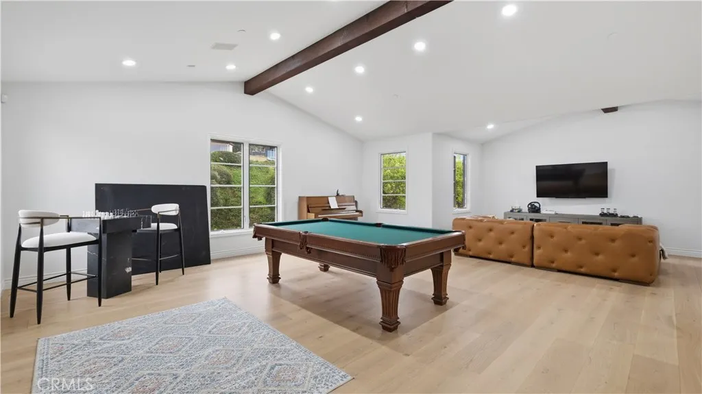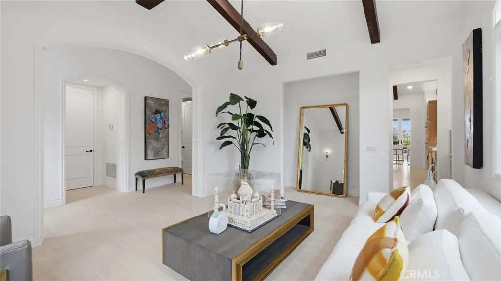 Positioned to capture panoramic mountain and city light views, this fully renovated home offers the convenience of single level living complemented by an additional upstairs bonus room and en suite bedroom and gym. Set on an expansive lot, the property features a gated entry courtyard and a resort style backyard with a pool, spa, and spacious patio, ideal for both everyday living and entertaining. The main level includes four well appointed bedrooms including the primary suite, New limestone and hardwood flooring, fresh paint interior and exterior, plumbing, and new lighting has been added throughout the home, enhancing its fresh, transitional appeal while the vaulted ceilings with exposed beams and hardwood floors adds character and warmth. The gourmet kitchen is equipped with Taj Mahal quartzite countertops, custom cabinetry, and high end stainless steel appliances, including dual ovens and a built-in refrigerator. The open concept layout flows into the family room, where a fireplace and large center island create an inviting gathering space. Designed for seamless indoor outdoor living with two sets of bi folding door systems, multiple rooms open directly to the backyard, where a covered loggia with a full outdoor kitchen extends the living space. Glass railings preserve unobstructed views, while custom lighting enhances the outdoor ambiance. The primary suite features a walk in closet, dual vanities, and a walk in shower. Generously sized secondary bedrooms and recently updated bathrooms. Located on a quiet, single loaded street, this home offers privacy while remaining close to hiking trails, parks, and top coastal destinations, including Fashion Island, Crystal Cove State Park, and Corona del Mar.