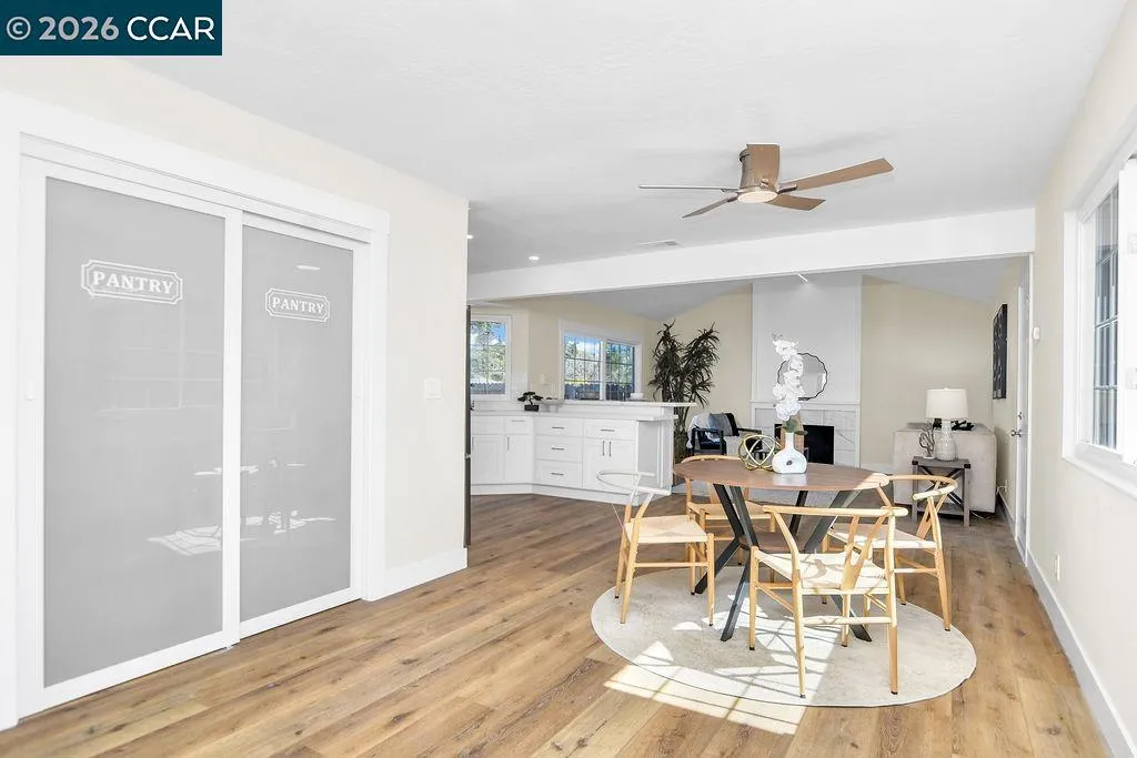 Updated 4 Bedroom 2 Bath Home in Martinez. All work done with permits. Updated Kitchen and Bathrooms. New HVAC, water-proof Laminate Flooring, stainless Steel Appliances, Fixtures, Paint inside and outside. New Lighting, Doors. The house has Owned Solar Panels, RV Parking, Detached Storage. Situated in a convenient, friendly, quiet neighborhood near shopping, dining and schools like highly rated Morello Park Elementary. Martinez offers a great Marina and Downtown area. Farmers markets, and access to great trails for hiking and biking. Come check out this open floor plan home.