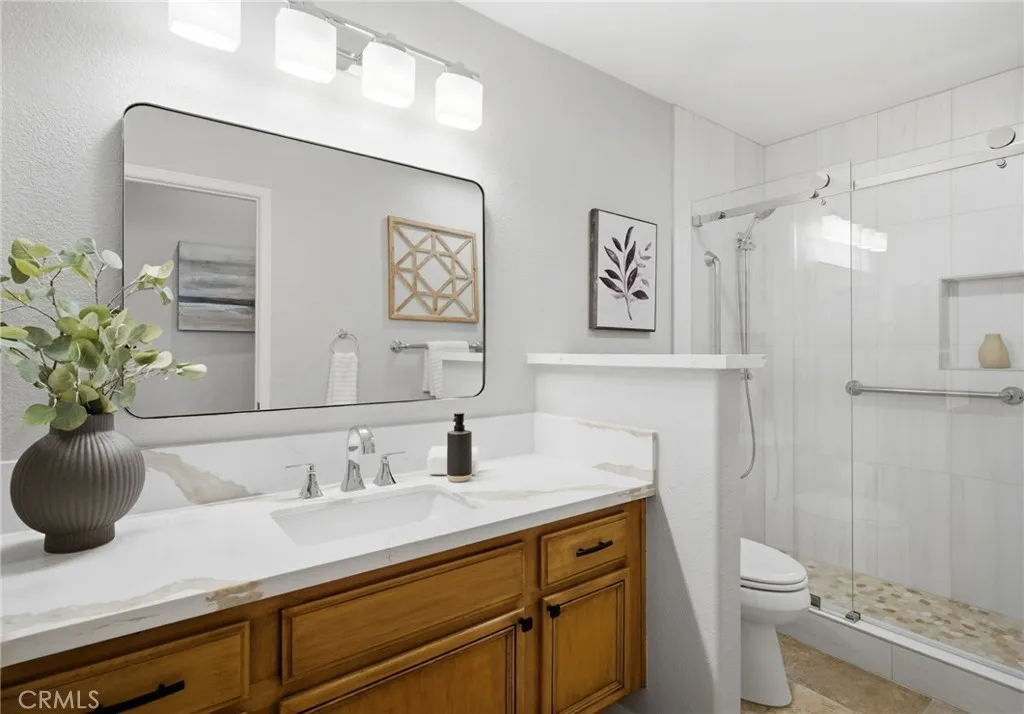 Rare single-story home in the highly desirable Bear Valley community of Copper Canyon! Situated on a sprawling 10,000 sq ft lot with sweeping views and improved RV parking, this beautifully upgraded 3-bedroom plus office home offers space, style, and an unbeatable location. Inside you’ll find tall ceilings, wood and tile flooring, plantation shutters, and an open layout ideal for everyday living and entertaining. The upgraded kitchen features custom refinished cabinetry, granite countertops, full tile backsplash, stainless steel appliances, large pantry, abundant storage, and a spacious center island that opens to the family room. The family room showcases an upgraded electric fireplace with custom stone surround and reclaimed wood mantel. One secondary bedroom includes a custom California Closets Murphy bed. The primary suite offers dual closets (including a large walk-in), sliding glass door to the backyard, and a private bath with dual sinks. The hall bath was recently remodeled with quartz counters and a custom walk-in shower. Enjoy exceptional curb appeal with a custom walkway, professional landscaping, vinyl side fencing, and wrought iron fencing across the back to capture the views. The backyard is designed for SoCal living with a full-length Alumawood patio cover with center peak ceiling, lighting, ceiling fans, mature landscaping, and yard lighting. Low tax rate (approx. 1.3%), NO HOA, top-rated schools, easy freeway access, trails leading to the Santa Rosa Plateau, parks, and just minutes to Downtown Murrieta. A rare single-story view home you don’t want to miss!