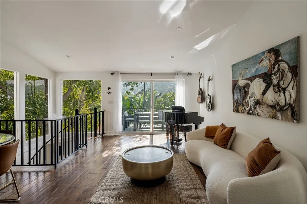 NEW PRICE!!! Located on a quiet cul-de-sac in the coveted Lake Hollywood Knolls, this thoughtfully updated Hollywood Hills home blends contemporary comfort with serene hillside views. Wood floors, high ceilings, and abundant natural light create an inviting, elevated atmosphere throughout. The open-concept chef’s kitchen features stainless steel appliances, a center island, and generous cabinetry—ideal for both everyday living and entertaining. Offering approximately 2,100 square feet, the flexible floor plan includes 4 bedrooms and 3 bathrooms, providing ample space to live, work, and unwind. The primary suite and main living area open to a private balcony with sweeping mountain views, perfect for morning coffee or evening relaxation. A defining feature of the home is the lower level, designed as a true extension of the living space. The inviting family room features a built-in bar with sink and dishwasher, ideal for entertaining, movie nights, or extended guest stays. The space opens directly to a private backyard oasis featuring a tranquil fountain, built-in smoker, and BBQ, creating seamless indoor-outdoor living and exceptional privacy. Additional highlights include custom closet systems, an oversized driveway with ample parking, a spacious two-car attached garage with built-in cabinetry and overhead storage, smart home upgrades, EV charger, and a 2023 roof with a 15-year warranty. Gated for privacy and offering multiple outdoor living areas, the property provides year-round enjoyment in a peaceful setting. Conveniently located near Hollywood, Burbank, Downtown LA, and other top destinations, this home delivers style, flexibility, and excellent access to the best of Los Angeles.