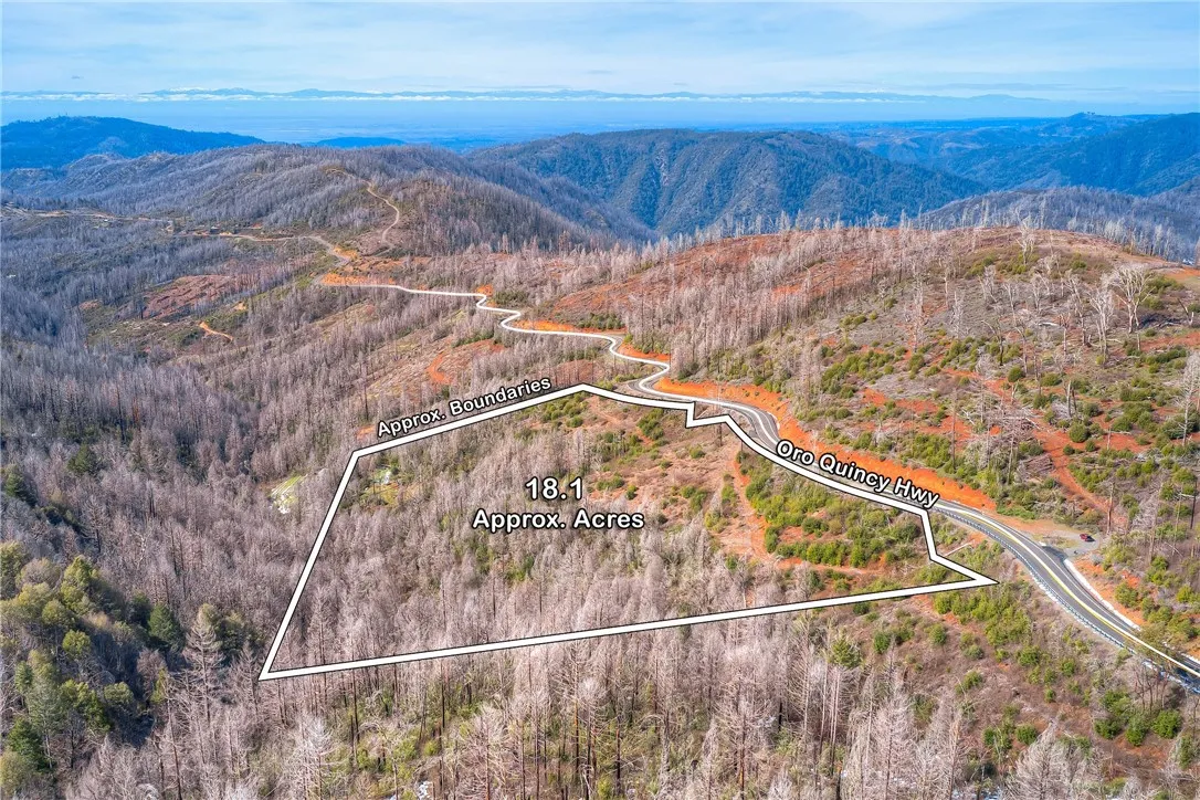 18.1+/- Acres in the Sierra Foothills. Panoramic Mountain View parcel. A Fresh Start with Endless Potential opportunity nestled in the foothills just above the base of the Sierra Nevada mountains at approximately 3,200 feet in elevation. With an impressive 1,400+/- feet of frontage along Oroville Quincy Highway, this property offers excellent visibility and access in a serene mountain setting. Previously impacted by area fires, the land now presents a true blank slate with an open canvas where new growth is already emerging and young trees are beginning to reclaim the landscape. The natural regeneration creates a unique opportunity to shape the property to your vision, whether for a private retreat, recreational escape, etc. (Buyer to verify zoning and uses). An old, overgrown access road runs through the property, leading to a small pad area and several spots suitable for creative clearing. Galen Creek at the base of property. With no existing improvements, you have the freedom to design and build from the ground up with proper planning. Ideally located just a short drive from Lake Madrone and a scenic drive to Lake Oroville. Outdoor recreation at your fingertips. Boating, hunting, fishing, hiking, and year-round fresh mountain air. The property is zoned TM and sits approximately 1/3 mile below the upper Oroville Quincy/Bald Rock Road intersection. If coming from town, pass the first Oroville Quincy/Bald Rock intersection, if you reach the second intersection, you’ve gone just a bit too far. Offered at an affordable price point, this is your chance to own a substantial piece of Northern California foothill land and create something truly your own.