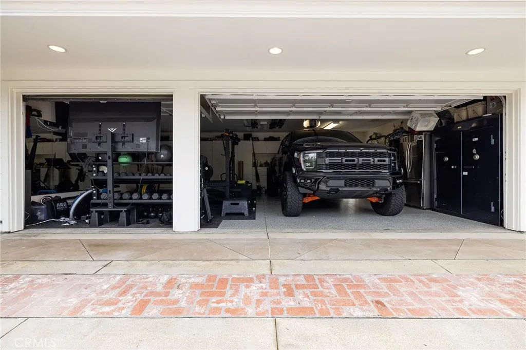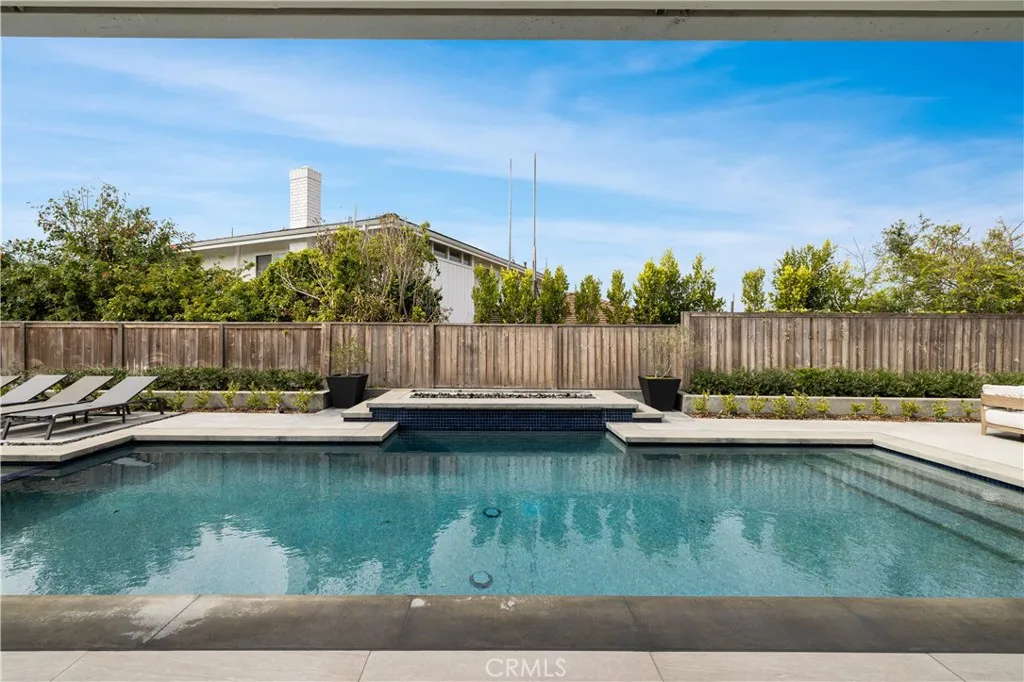 Thoughtfully reimagined, this single-level residence designed by Barclay Butera with architecture by Spectrum Architecture embodies cohesive craftsmanship and elevated California living. Four bedrooms and two-and-one-half baths spanning approximately 2,716 square feet unfold beneath vaulted ceilings with reclaimed beams from E & K Vintage Wood and white oak flooring throughout. Seamless indoor-outdoor flow is achieved through a 24-foot Southland sliding door system, complemented by a custom steel Dutch door by Pinky’s Iron Doors. Living spaces are arranged on one level for effortless comfort and functionality. Limestone fireplace and accent wall anchor the main living areas, enhanced by integrated Sonos audio indoors and out. French doors open to a dedicated office featuring custom white oak built-ins and a limestone fireplace. Two substantial islands define the kitchen, finished in Taj Mahal leathered quartzite with matching backsplash, custom white oak cabinetry with LED lighting, Waterstone fixtures, and a hinged pass-through window to the outdoor grilling station. Sub-Zero refrigeration, a Bertazzoni 48-inch double-oven range, dual Bosch dishwashers, TRUE ice maker, microwave, KitchenAid warming drawer, and reverse osmosis filtration complete the appliance suite. Just beyond, a glass-enclosed wine cellar with Wine Guardian system enhances entertaining. Vaulted ceilings extend into the primary suite, paired with a spa-inspired bath featuring Capri quartzite and custom stone with Restoration Hardware fittings. Secondary baths showcase Saratoga leathered quartzite. Outdoor living, designed and built by Backybay Custom Pools, extends beneath a heated loggia with Infratech heaters to a renovated pool and spa (2024), replumbed and rewired with new electrical, LED lighting, PebbleTec finish, and Ann Sacks waterline tile. A 10-foot waterfall descends into the pool below a separate 10-foot fire wall. An oversized rear fire pit anchors the entertaining area, while the Saratoga leathered quartzite-clad BBQ island includes a Lynx grill. At the front courtyard, a Restoration Hardware gas fire pit sits near the office French doors, complemented by custom Volt LED landscape lighting. Comprehensive 2025 system upgrades include new plumbing, electrical and panel, 50-amp EV charging, attic storage, and a detached three-car garage configured as a Rogue Fitness-equipped gym. Enjoy close proximity to beaches, Fashion Island, premier golf, and award-winning schools.