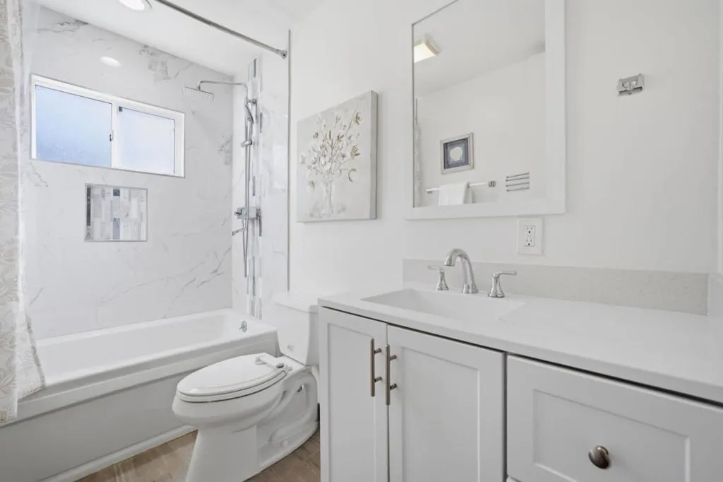 Absolutely charming, beautifully updated home located in a desirable neighborhood just steps from a large community park. Thoughtfully refreshed for todays homeowners, the property features new vinyl laminate flooring, updated baseboards and crown molding, recessed lighting throughout, upgraded electrical and outlets, and fresh interior texture and paint. The home offers both a separate living room and family room, with the family room showcasing a contemporary refaced fireplace. Bathrooms have been tastefully updated with tile flooring, modern vanities, nickel-finish fixtures, stylish shower tile, and updated lighting. The primary bedroom includes a generously sized closet with a modern barn door. Owned solar panels and the convenient location offers an easy commute. A wonderful opportunity in a fantastic neighborhood.