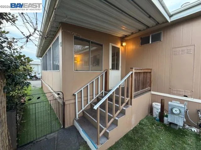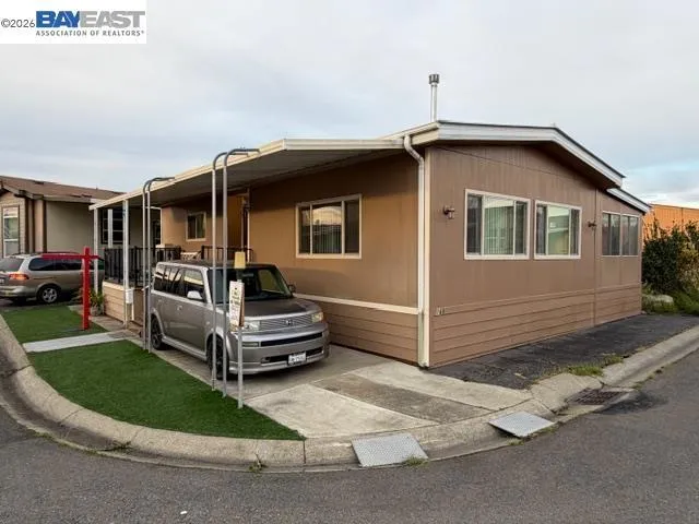 Affordable home in Hayward Mobile (adult, 55+ community). This cute and cozy home is on a corner lot and has; 2 bedrooms; 1 1/2 bath; dual pane windows; dining area with built in hutch; stackable washer and dryer; large enclosed porch 10 x 22 not part of sq ft; great relaxing 8' x 12' porch; storage sheds; community features clubhouse, pool, library, and one of Hayward's lowest space rents. Fireplaces: PST,