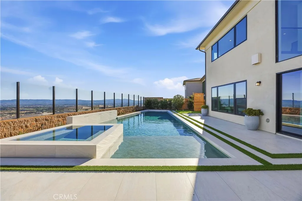Brand-new, never lived-in estate located in the prestigious guard-gated community of Westcliffe at Porter Ranch. Situated on a premier 10,409 sq ft lot and offering approximately 5,200 sq ft of refined living space, this highly upgraded residence stands apart from typical resales. A grand entry framed by mature palm trees creates an elegant Southern California arrival. The open-concept floor plan features soaring ceilings, wide-plank flooring, expansive glass, a dramatic floating staircase, and a striking double-height glass wall. The chef’s kitchen is appointed with quartz countertops, an oversized island, premium stainless steel appliances, soft-close cabinetry, and a built-in wine refrigerator. The family room opens seamlessly to the backyard through multi-panel sliding doors. The newly completed backyard showcases a custom saltwater linear pool with elevated spa, professional landscaping, and mountain views — delivering a true resort-style setting. Additional upgrades include integrated surround sound and enhanced security system. Located within a secure guard-gated enclave, close to The Vineyards shopping center, reputable private schools, award-winning public schools, and convenient access to the 118 & 405 freeways.
