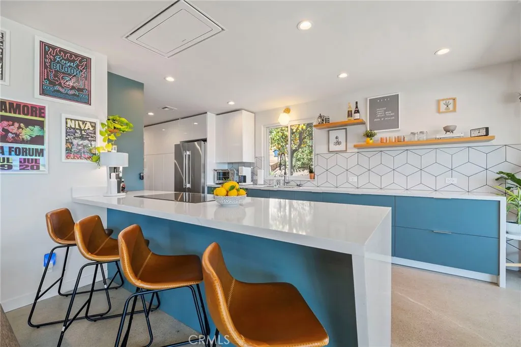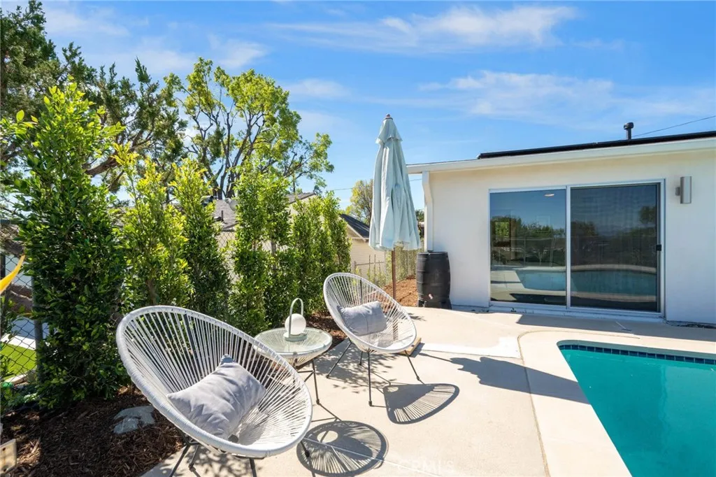 Experience breathtaking sunrise and sunset vistas from this beautifully remodeled 4-bedroom hillside retreat in West Hills, inspired by timeless Mid-Century design. A private wood-gated courtyard welcomes you into a light-filled interior where modern minimalism meets warmth and style. Natural wood accents, matte concrete floors, a soothing neutral palette, and clean architectural lines complement the open, flowing floor plan. Walls of glass invite seamless indoor-outdoor living, opening to an entertainer’s patio that showcases sweeping canyon panoramas and sparkling Valley city lights. The sleek kitchen features Quartz countertops, all electric appliances, enameled cabinetry, and a charming breakfast area that connects effortlessly to outdoor dining. The serene primary suite, along with three additional bedrooms, completes this thoughtfully designed home. Enjoy a large, sparkling pool and beautifully landscaped, drought-tolerant grounds. Ideally located near award-winning schools, Calabasas Commons, The Village, and premier shopping and dining—this is California living at its finest. Wait there's more! Solar system produced 8,000 Kilowatts in 2025