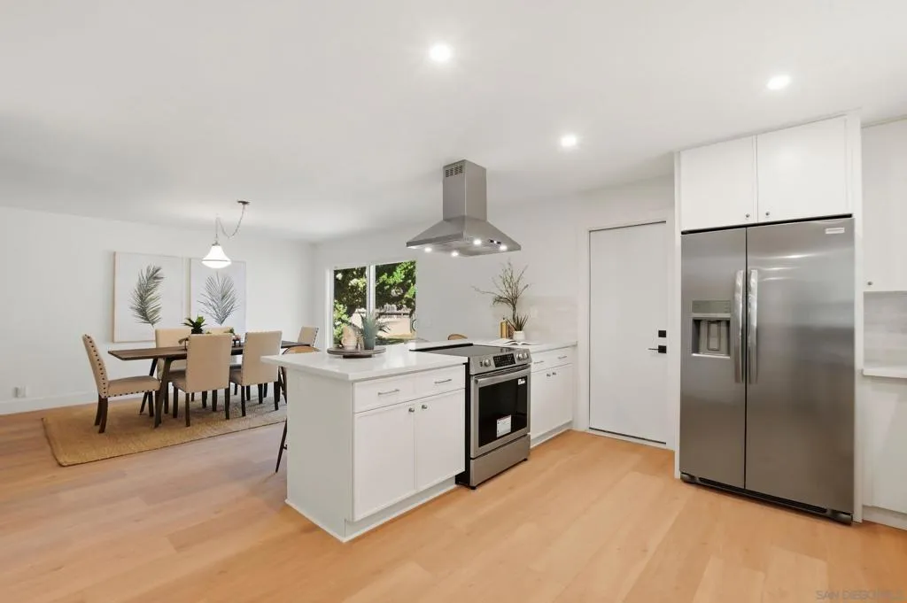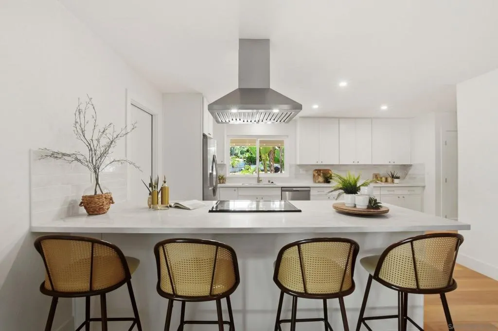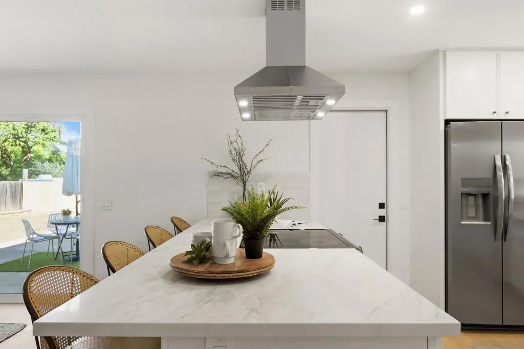 Welcome to your own private retreat in Vista, situated on an expansive .9-acre usable lot. This beautifully renovated home blends modern design with warm finishes, offering space, style, and functionality inside and out. The heart of the home is the expansive open-concept kitchen, featuring crème slim shaker cabinetry, all-new appliances, marbled quartz countertops, and a timeless tile backsplash. The adjoining living room is highlighted by modern light fixtures and a striking fluted black tile fireplace — the perfect centerpiece for gatherings. Both bathrooms are thoughtfully designed with dual vanities and matching slim shaker cabinetry. The shared bath makes a bold statement with a forest green checkered tile surround paired with brushed bronze finishes for a perfect pop of character. The primary suite offers a sleek, modern aesthetic with pearl Bedrosian tile surround and a custom niche for a clean, spa-like feel. Throughout the home you’ll find fresh interior paint, new baseboards, recessed can lighting, and oak-toned Luxury Vinyl Plank flooring that ties everything together beautifully. The true standout is the lot — nearly a full acre of usable space, a brand-new driveway, and two massive storage sheds ideal for a workshop, studio, playroom, home gym, or extra storage. This is the perfect blend of privacy, modern renovation, and room to grow — a rare Vista opportunity.