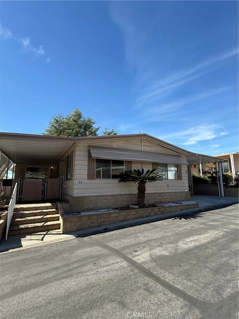 This lovely home is located in Valencia Lea, Highland's Premier 55+ Community. Featuring 2 bedrooms, 2 baths, large living room, large family room and dining area. Kitchen with stove,oven, dishwasher, breakfast bar, lots of cabinets, main bedroom has attached bath& 2 closets. Seperate Laundry room. Home backs up to beautiful tree area, with stream and Koi Pond. You can listen to the stream from the back yard. There is a peak a boo view of the city lights from back yard. This park is beautiful...there are amazing mountain views, walking trails through redwood trees and streams, 2 clubhouses, pool, 2 spas, a gym, bar b que's, activities, including bingo and dominos. The home offers a covered patio, plus full carport. There are planter areas to enjoy some landscape. Public records show over 1700 square feet...the original sales receipt shows 1440 square feet. Buyers to confirm. This home and park are beautiful. This is definately a must see!!!