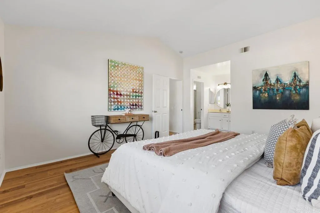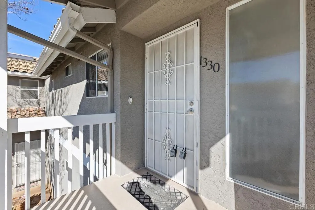 Welcome to 1330 Palomar Place, a beautifully refreshed upstairs condo offering incredible light and a turn-key, expansive feel. This 3-bedroom, 2-bath home spans approximately 1,396 sq ft and features hardwood flooring throughout the main living areas, Fresh interior paint, and newly painted cabinetry, with newly installed matching luxury vinyl plank flooring in all three bedrooms for a cohesive, modern look, plus a cozy fireplace. Move-in ready, this home stands out for its brightness, thoughtful updates, and livability. The open living area flows seamlessly to a large private balcony, creating an inviting indoor-outdoor connection and extending the living space; so perfect for relaxing or entertaining while enjoying the surroundings. The association community also offers a pool, spa, and clubhouse. Situated in a convenient Vista location, close to shopping, dining, and commuter routes, residents enjoy easy access to coastal and inland destinations, outdoor recreation, and everyday essentials. An easy day trip from San Diego, San Onofre, San Clemente, and Trestles, this inviting home is a great opportunity.