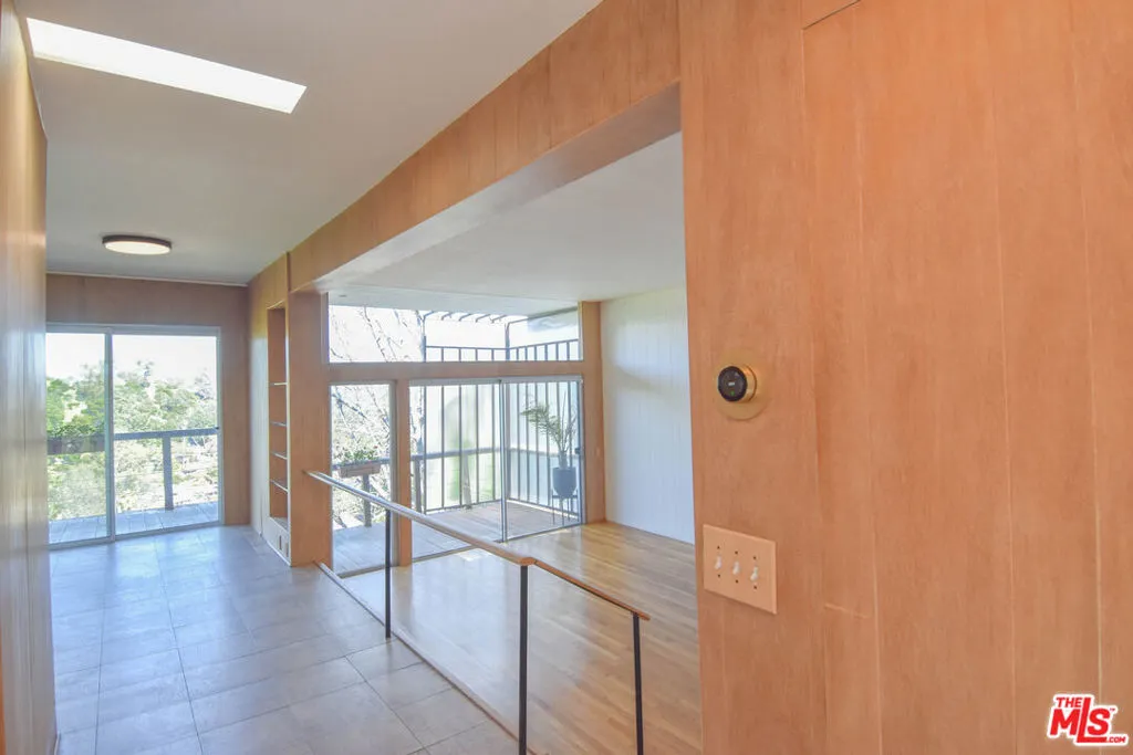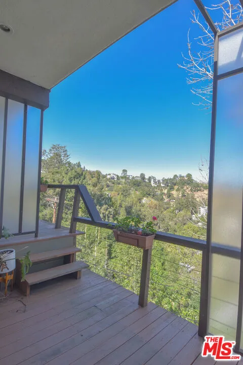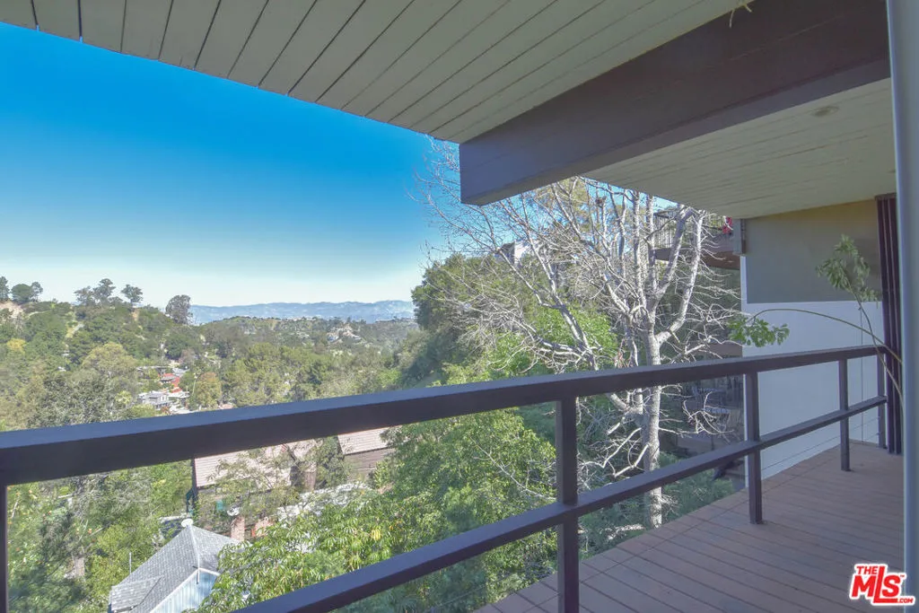 Perched on the crest between historic Laurel Canyon and Sunset Plaza, this classic mid-century post-and-beam retreat captures the very essence of Westside canyon living in the coveted Hollywood Hills.Featured in Dwell, this private and gated treehouse-style oasis welcomes you with a mahogany-planked forecourt and the tranquil sounds of a water feature setting the tone for a home designed equally for elevated entertaining and serene retreat. Surrounded by lush greenery and layered canyon views, the property feels worlds away, yet remains moments from the energy of the city.Inside, timeless mid-century architecture shines through oak floors, soaring ceilings, floor-to-ceiling glass, and sweeping canyon vistas from nearly every room. A stunning travertine fireplace anchors the dramatic step-down living room, creating an architectural focal point that is both warm and striking. Natural light floods the interiors, blurring the lines between indoors and out.The eat-in kitchen, outfitted with updated appliances, opens to a BBQ deck perfect for al fresco dining under the trees. A bedroom and full bath complete the main level, offering flexibility for guests or family. Upstairs, the primary suite serves as a peaceful sanctuary with its en-suite bath and private deck overlooking the hills and canyons an idyllic perch for morning coffee or sunset unwinding. An additional guest bedroom and bath complete the upper level. Exterior stairs lead to a third-level private-entry guest quarters/home office with kitchenette and bath (not included in square footage or bed/bath count), ideal as a separate in-law studio, creative workspace, or income opportunity. The attached garage provides convenience, while the expansive backyard unfolds into a true jungle-like retreat a curated array of mature trees and abundant plantings create total privacy. A tucked-away hot tub offers spa-like relaxation beneath canyon skies, with views that stretch endlessly across the hills.Just minutes from the iconic Sunset Strip, historic Hollywood, and award-winning Wonderland Avenue Elementary School, this is Laurel Canyon living at its finest architectural, soulful, private, and effortlessly California cool.