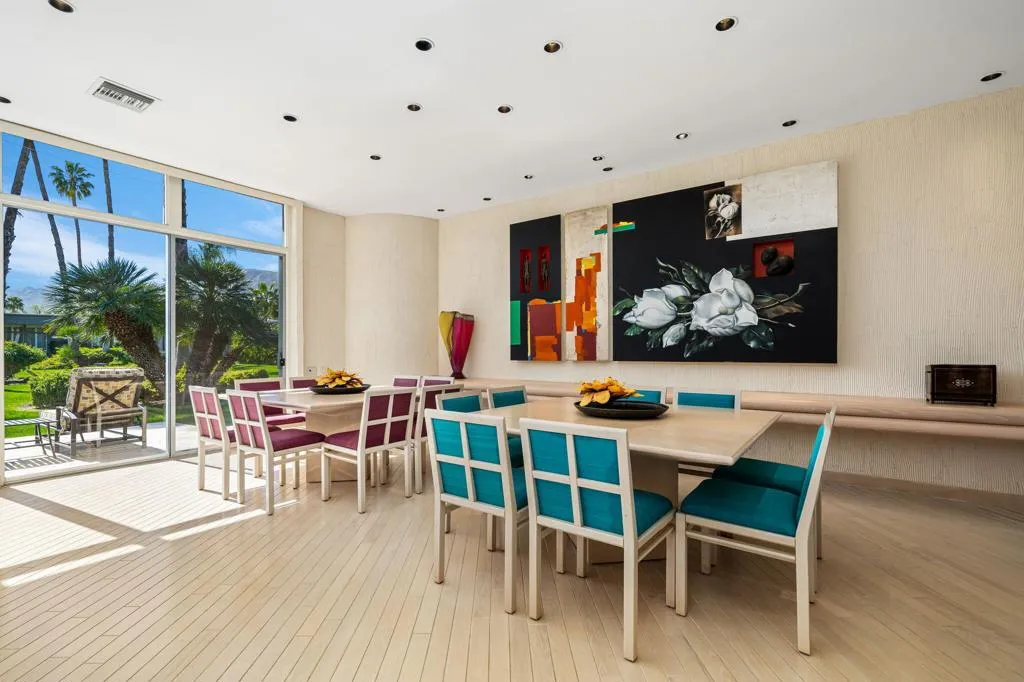 ***PRICE ADJUSTMENT***Located in the highly sought-after Tamarisk community--featured on the Modernism Tour and adjacent to the prestigious Tamarisk Country Club--this mid-century residence blends old-world desert charm with iconic architectural pedigree. Designed by renowned architect S. Charles Lee, celebrated for his legendary motion picture theater designs, the home captures timeless style with modern comfort. This won't last, book a private showing today.Floor-to-ceiling windows span the rear of the home, filling the open living and dining areas with natural light and showcasing panoramic south-facing mountain views. Herringbone white wood flooring enhances the clean lines throughout. The flexible floor plan offers three bedrooms and three baths, including two spacious en-suites and a third en-suite bedroom or den. Owned solar, new A/C, and newer mechanical systems complete this exceptional offering in one of Rancho Mirage's most desirable mid-century neighborhoods.