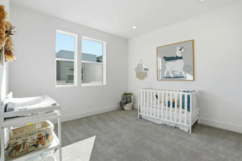Towns Plan 2, available for quick move-in, offers 4 bedrooms, 3.5 bathrooms, and a 2-car side-by-side garage. The open-concept layout features a spacious kitchen with quartz countertops, a large island, Bosch appliances. A private deck extends the living space, perfect for relaxing outdoors. Engineered hardwood floors flow throughout main living areas, complemented by paint-grade shaker-style soft-close cabinetry and 4" LED recessed lighting. The first floor includes a bedroom with an en-suite bath, ideal for guests or a home office. The primary suite offers a generous walk-in closet, combining comfort and functionality. Solar panels enhance energy efficiency and are available for lease or purchase. City Village by SummerHill Homes features 404 elegant residences centered around a 2-acre public park with walking and biking trails, seating areas, and a community barbecue space. Ideally located near San Ramons City Walk neighborhood and within walking distance to City Centers restaurants, movie theater, and shops, the community offers exceptional convenience. Condo ownership. Close to schools, major employers, and public transit, with nearby attractions, Central Park, Canyon Lakes Golf Course, and Bridges Golf Club. Images shown depict another home; actual finishes may vary.