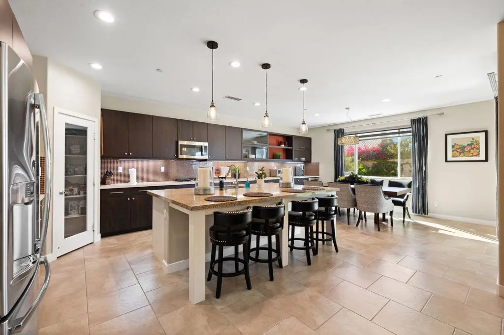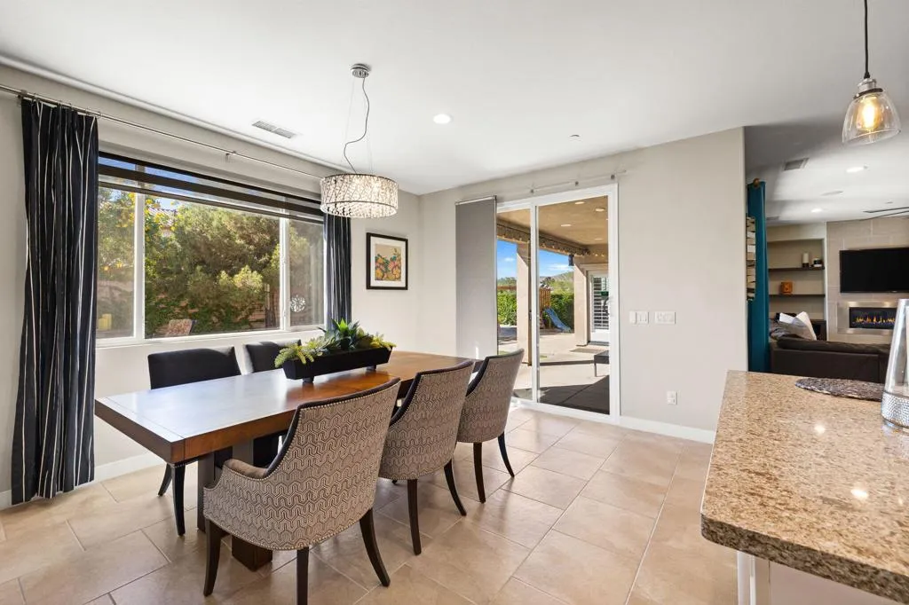 Welcome to 41371 Doyle Street, a beautifully upgraded former Woodside Homes model built in 2014, located in the desirable Desert Trace community of North Indio. This exceptional single-story residence offers 4 bedrooms, 2 full bathrooms, a powder bath for guests, plus a versatile den--providing the perfect balance of comfort, style, and functionality.Designed for modern living, the open-concept layout seamlessly connects the living, dining, and kitchen areas, making it ideal for entertaining and everyday enjoyment. The expansive great room is filled with natural light and enhanced by recessed lighting, upgraded flooring, designer finishes, and 9-foot ceilings that create an airy, spacious feel throughout.The chef-inspired kitchen is the heart of the home, featuring quartz countertops, stainless steel appliances, upgraded cabinetry, and a stylish designer backsplash. Ample counter space and storage make this kitchen both beautiful and practical for gatherings of any size.The spacious primary suite offers a relaxing retreat with dual vanities, upgraded finishes, and the added luxury of separate his-and-hers closets for optimal storage and organization. Secondary bedrooms provide flexibility for family, guests, or hobbies, while the den makes the perfect home office, playroom, or additional lounge space. A convenient powder bath ensures added comfort for visitors.Energy efficiency meets convenience with solar and dual-pane windows designed to help reduce utility costs. The 2-car garage includes a dedicated amp plug for EV charging, adding modern functionality for today's homeowner.Enjoy added privacy with no neighbor on one side and take in the beautiful mountain views that make desert living so special. The backyard offers space to relax, entertain, or create your own outdoor oasis.Additional highlights include low-maintenance landscaping and a low HOA of only $86 per month.Ideally located near schools, golf, shopping, dining, and easy freeway access, this home combines designer upgrades, privacy, and energy efficiency in one exceptional package.Don't miss this rare opportunity to own one of Desert Trace's most desirable former model homes.