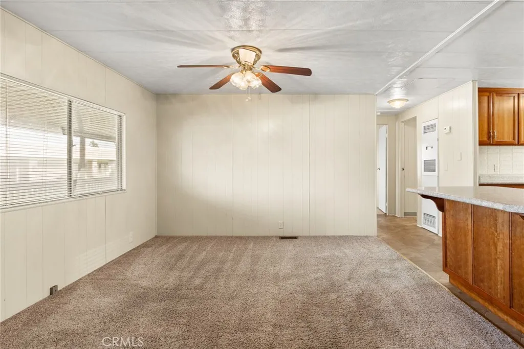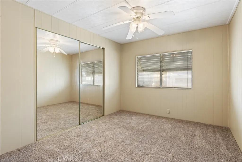 Clean unit with custom cabinets, newer appliances, new awning and widened parking area, metal shop/storage with work bench. Bathrooms upgraded with shower in the Master and tub/shower in the 2nd bath. Entertainment center included in living area. This unit is bright and clean with ceiling fans in most rooms, matching counters in kitchen and baths, window blinds, central heat and air, and low flow toilets. The long front patio faces north to enjoy cool spring days, and the pool is across the street when summer days hit, and you are looking for a place to cool off. You will find plenty of guest parking just across the street and office, social hall, mailbox and library to be involved in all the activities offered by the park. Don't miss this great affordable unit.