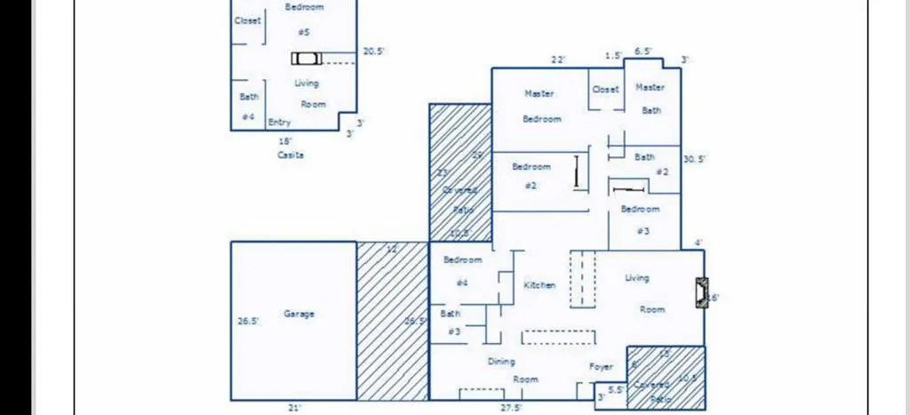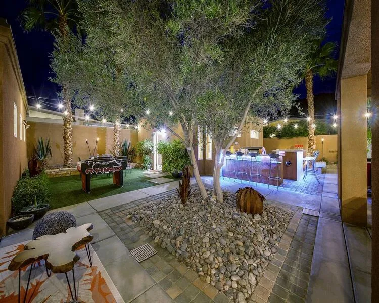 Welcome to your dream retreat in downtown La Quinta! This remarkable **3,064 sq ft** home sits on a **huge double lot**, offering an abundance of space and luxury living. With **five bedrooms** and **four baths**, this home is perfect for families and entertaining guests. A standout feature is the **detached 500 sq ft Casita guesthouse**, complete with a bedroom, full bath, living room, and kitchenette, providing the ideal space for visitors or potential rental income. The property also boasts potential RV access with a gated entry, ensuring convenience for all your recreational needs.Security and privacy are paramount, with a private driveway and garage featuring a security gate with remote access. The main home includes a two-car garage plus an additional golf cart garage, catering to all your parking requirements.Inside, you'll find elegant French doors in each bedroom that open to the enchanting outdoor space, complemented by beautiful travertine flooring throughout. The modern kitchen, designed for both aesthetics and functionality, features updated cabinetry and upgraded stainless steel appliances, making cooking a delight.Step outside to discover a backyard oasis perfect for entertaining and relaxation. Enjoy outdoor fun with bocce ball, a cozy fire pit, a refreshing lap pool, and a spa--all complemented by a built-in barbecue and bar area for alfresco dining.Ideal for outdoor enthusiasts, this home is just a short walk away from hiking and biking trails, as well as the vibrant shops and dining options in downtown La Quinta. Don't miss this opportunity to own a stunning home in a prime location! Schedule your private tour today and experience the perfect blend of luxury and lifestyle!