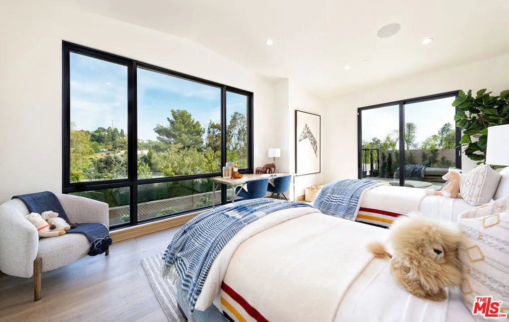 The Janice Place Estate is a brand-new single-story contemporary masterpiece in Beverly Hills 90210 post office, perfectly situated on a serene cul-de-sac one block north of the legendary Trousdale Estates and minutes from Bel Air. Set on a nearly 29,000-square-foot lot, this brand new construction residence spans 6,194 square feet with 6 en-suite bedrooms, 9 bathrooms, and a seamless open floor plan designed for quiet luxury living and world-class entertaining. Floor-to-ceiling automated glass doors dissolve the boundary between indoors and out, opening to a private backyard paradise with an infinity-edge pool, heated spa, waterfall, fire pit, and sweeping canyon views framed by mature trees and lush landscaping. The chef's kitchen features Miele appliances, dual ovens, two dishwashers, built-in espresso maker, Calacatta Borghini waterfall islands, custom cabinetry, walk-in pantry, full wet bar, and a temperature-controlled glass wine room. European hardwood floors flow throughout. The media room features a wide electric fireplace and matchbook porcelain feature wall, converting effortlessly from an open entertainment space to an intimate home theater.The grand primary suite is a private sanctuary with a pearl onyx double-sided fireplace, seating area, private patio, and dual spa-caliber bathrooms each with a soaking tub, steam shower, and walk-in closet. Five additional bedroom suites offer flexible configurations for family, guests, home office, gym, yoga studio, or au-pair quarters. Outside is an entertainer's dream with a custom barbecue station, multiple lounge areas, and a fire pit surrounded by breathtaking canyon scenery. Delivered turnkey with curated interior design and a one-of-a-kind art collection (available for purchase), Sonos Arc whole-home sound, app controlled home technology, and a comprehensive ring camera security system. For those seeking a new construction Beverly Hills PO mansion, a luxury estate near Trousdale Estates, or a private canyon-view home comparable to Bel Air's finest the Janice Place Estate is the quiet luxury escape you have been looking for.
