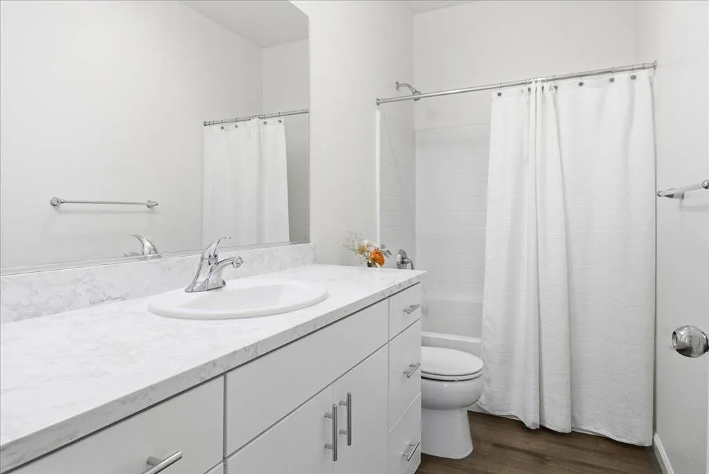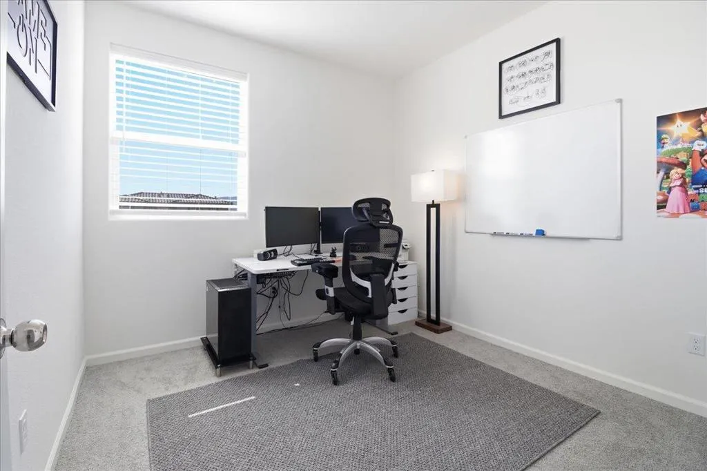 Built in 2023 in the Las Viviendas Fourplex Community, this 3 bedroom, 2.5 bath home offers 1,359 sq ft of modern, easy living. Located on the end of the building, it only shares one wall and gets great natural light throughout. This unit has its own driveway and attached two-car garage, plus plenty of street parking nearby for guests. The kitchen is bright and clean with white cabinets, quartz countertops, and a peninsula-style island that adds extra prep space and room for casual seating. The open layout downstairs makes the space feel comfortable and functional for everyday living. All three bedrooms are upstairs, including the primary suite with a walk-in closet and private bath. Situated next to a local school and in a newer neighborhood, this move-in ready home offers the benefits of newer construction without the wait.