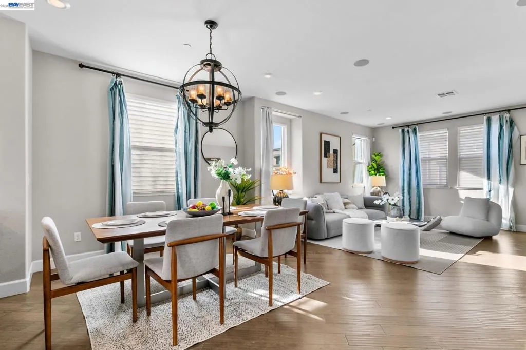 One of the most desirable and spacious floor plans in the entire community! This former model home offers approximately 2,100 sq ft of beautifully designed living space, along with nearly $100K in premium location value and upgrades. The entry level includes a private bedroom with its own full bathperfect for guests, multigenerational living, or a dedicated home office. On the main floor, the open-concept layout centers around a stylish gourmet kitchen appointed with quartz countertops, stainless steel appliances, and a modern semi-island. The kitchen flows effortlessly into the dining and living areas, creating an ideal environment for both everyday comfort and entertaining. Upstairs, the primary suite offers a peaceful retreat with a spa-inspired bathroom, dual vanities, and an oversized walk-in closet. The location is truly exceptional. Youre within walking distance to BART, neighborhood parks, golf courses, Mercado Park, and the newly developed Market Park Plaza with Safeway, CVS, and more. Plus, youre just minutes from Costco, Ranch 99, H-Mart, and major commuter routes including 101, 880, and 680, making travel throughout the Bay Area incredibly convenient. Opportunities like this are raredont miss your chance to make this impressive home yours!