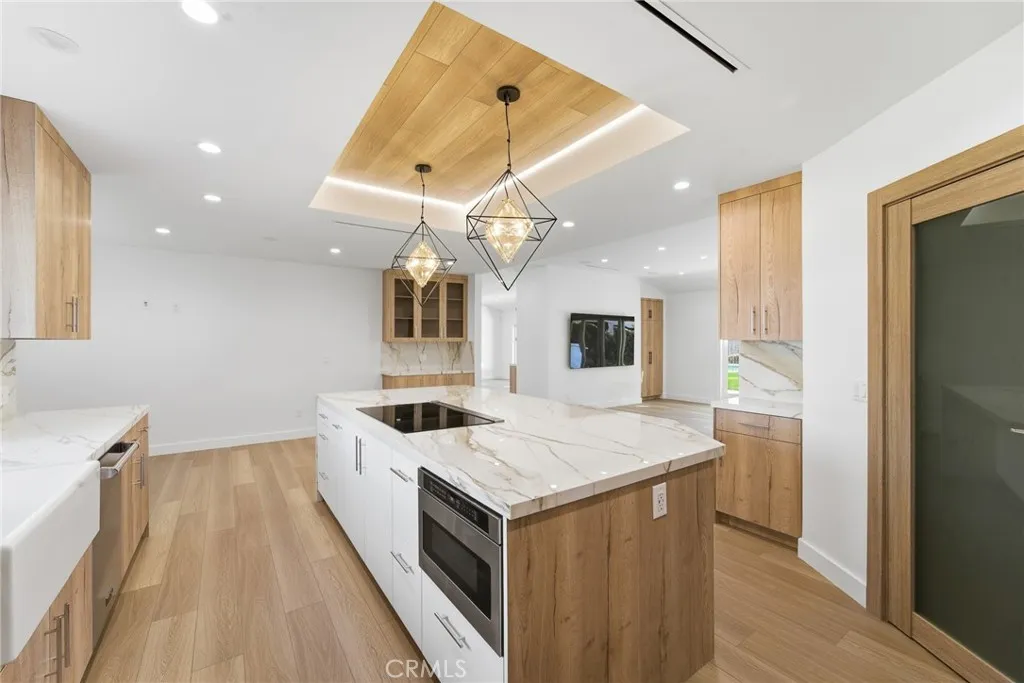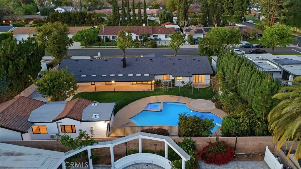 Designed for those who appreciate elevated living with enhanced outdoor amenities, this newly reimagined single-story estate with a detached 1-bedroom, 1-bath Guest House captures the essence of modern California luxury. Thoughtfully curated with exceptional finishes throughout, the home balances sophistication with warmth in a layout that feels both expansive and effortless. At its heart, a striking chef’s kitchen with state of the art Viking appliances, custom Italian porcelain slab countertops, full-height backsplash, and an oversized center island with a waterfall edge anchors the space, opening seamlessly to inviting living areas designed for connection and comfort. A stone fireplace adds texture and warmth, while refined luxury vinyl flooring, LED lighting, integrated security, and hardwired communications network, indoor and outdoor WiFi enhance everyday living with quiet precision. The primary suite offers a private retreat with a spa style soaking tub, custom walk-in closet, and direct backyard access. In the main house there are four additional ensuite bedrooms and an oversized bonus room that provides flexibility for guests, entertainment, or creative space. Beyond the interiors, the property transforms into a private resort. A sparkling pool and spa, large covered patio with mounted TV, built-in BBQ, fire pit, children's swing set, pull-up and monkey bars, shuffleboard court, and multiple lounge areas that create an atmosphere that feels both elevated and relaxed, quintessential indoor/outdoor California living. Complete with a detached two-car garage, with basketball hoop, Tesla charging outlet and an expansive gated driveway for ample additional parking, this exceptional residence offers far more than can be captured in words. A must see.