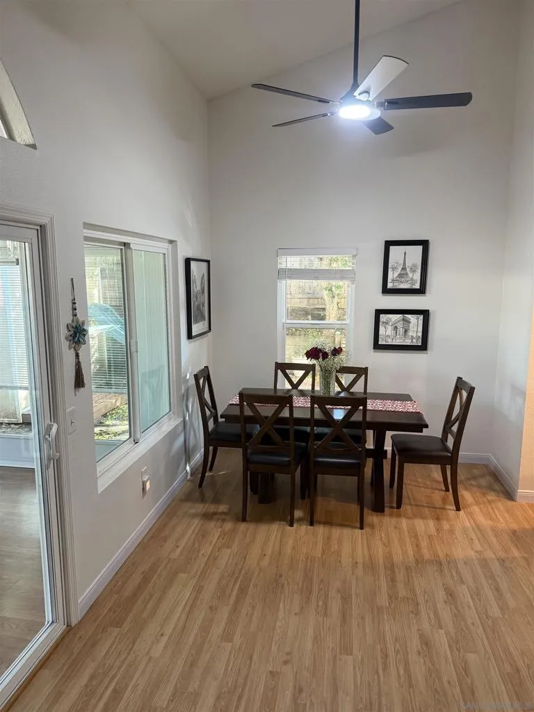 This pristine move in ready home boasts amazing curb appeal and it is conveniently located in lovely Santee, near Big Rock Park and Chet F Harritt School. This 3 bedroom 2 bath home with an additional sunroom/family room offers 1600 sf of living space, and It has been upgraded with new dual pane windows, front door keyless hardware, new siding with fresh paint recently, and a spacious sunroom for enjoying your morning coffee. The Kitchen has solid wood white cabinets with new appliances with plenty of counter space, and is open to the living and dining room, creating a comfortable flow. The extra large master bedroom upstairs offers a secluded loft feeling. The other two large bedrooms are downstair near the second bathroom and full laundry area. If you are looking for a well maintained home in a fantastic neighborhood for a great price, this is it! Don't miss this opportunity to own a home in Santee!