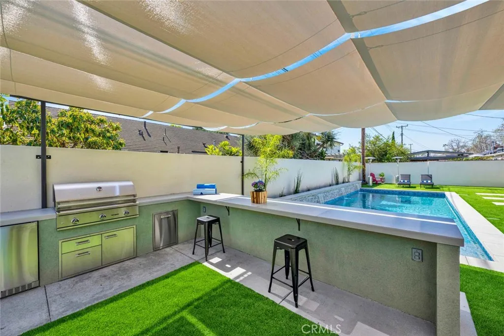 Show stopping curb appeal that instantly captivates! This brand-new, modern, single story gem is perfectly positioned in one of Orange County's most sought after communities, Rossmoor. Step inside the dramatic entry into nearly 3,400 square feet of open, crisp, light filled space featuring 4/Beds and 4.5/Baths. The impressive gourmet kitchen is bathed in natural light and serves as the centerpiece of the home offering a jaw-dropping center island, Thermador appliances, double oven, dual sinks, tons of counter space, seating area, walk-in pantry, and flows seamlessly into a grand open living and dining area with thoughtful details that make you feel right at home. The spacious primary suite and junior suite offer walk-in closets, style galore, and spa like comfort, while a separate guest suite enhances this exceptional floorplan. Sliding pocket doors open to an entertainer's dream backyard, complete with a salt water pool and spa, full outdoor kitchen with built-in BBQ, fire pit, and space for your pets. Enjoy the finest in indoor and outdoor living, convenient smart features, and direct interior access from the oversized two-car garage with epoxy coated flooring. Benefit from paid Solar, top rated Los Alamitos schools, and a neighborhood that you will enjoy coming home to everyday. The Pacific coastline is just minutes away, further enriching the lifestyle experience. This is your Rossmoor dream home!