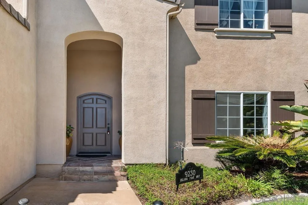 Gated community with an Executive home w/a grand foyer, sweeping staircase, soaring ceilings & numerous custom upgrades. Gourmet kitchen w/2 granite top islands & breakfast niche opens onto the spacious family room. Luxury master suite features a lounge area, dual sided fireplace, 2 walk-in closets & balcony. 1bed & bath on 1st level. Home has Solar. Over-sized corner lot with Pool, Spa, BBQ & firepit. 4-car garage, Gated Driveway. Top rated Poway schools District.