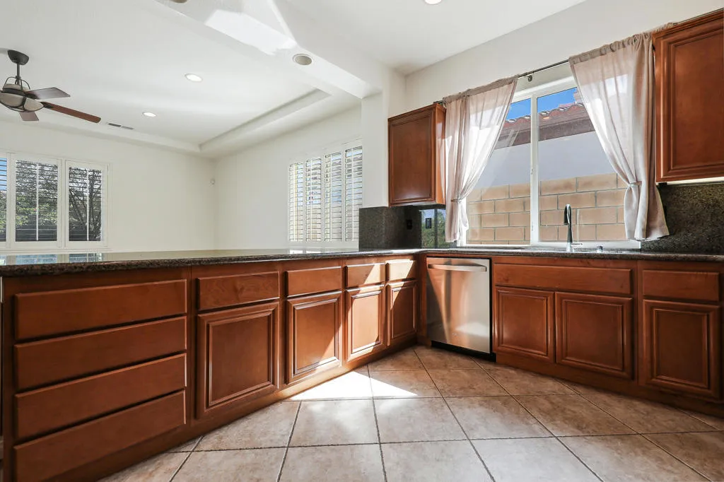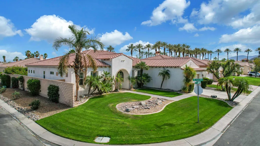 La Quinta Del Oro, North La Quinta, across from Indian Wells Tennis GardenLocated in a true desert paradise community, this light filled 3BD, 3BA home offers a spacious, versatile bright floor plan with two private suites. The primary suite features dual vanities, a Jacuzzi soaking tub, and separate shower. Enjoy a separate living room with fireplace, additional family room, and flexible space for formal dining, den, or office. The living room floor plan opens up to the kitchen with large counter tops, stainless steel appliances, window shutters, cover backyard patio, laundry room, and attached garage complete the home.Prime location near world class tennis, golf, dining, and shopping in sought after North La Quinta.