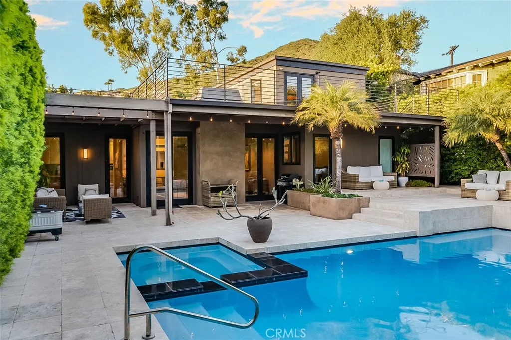 Set down a long drive on a generously sized street-to-street parcel and nestled behind lush landscaping, the ‘intimately-sized’ mid-century estate at 31511 West Street perfects beach living. With your choice of beaches just blocks away, hiking trails, a park across the street, and some of the best dining in Laguna within blocks, living at 31511 West Street is a vacation every day! The home has been recently re-imagined and fully updated to an aesthetic that focuses on essential luxuries – clean lines, warm woods and contemporary fixtures set the tone. Upon entering, you are greeted by soaring ceilings and natural light. The living room opens via multiple sets of french doors to a zen-like and private oasis. Beautifully landscaped and totally private, the backyard has multiple dining and lounging vignettes, all centered on a glistening pool and spa. In addition to the living and dining rooms, the main level includes two bedrooms, and two full bathrooms (one en-suite) and an open kitchen. Equipped with high-end appliances and an abundance of storage in the custom cabinets, the oversized work and dining island is surfaced with an unusually stunning stone slab. Oriented toward the panoramic ocean and Catalina views, the upper level has an additional bedroom and an oversized, spa-like bathroom with soaking tub and walk-in shower. The upper level media den/office opens to an over-sized ocean view deck allowing you to catch ocean sunsets and Catalina Island year-round. The long drive leads to a motorcourt and three car garage, both a rarity in Laguna Beach. A large utility room off the garage houses the laundry an more storage space. The privacy once inside the property is virtually absolute - yet still very connected to all that makes Laguna Beach so wonderful – just one block to West Street beach, the Valido trail and the South Laguna Village and restaurants. 31511 West Street is simply a magical property, the kind that comes along once in a blue moon.
