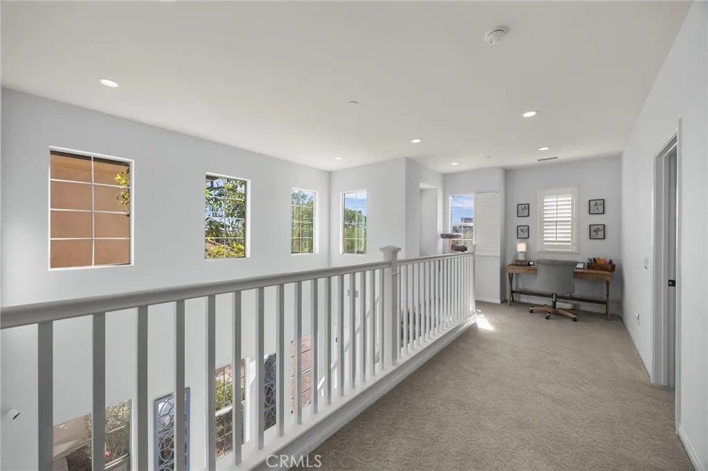 Welcome to your new home, the epitome of modern luxury and comfort. From the moment you enter the two-story foyer, you are treated to a home with exceptional natural light and amenities. The great room is the heart of the home, with a gourmet kitchen complete with expansive all-wood cabinetry, quartz countertops and a large island. Dual ovens, a pot filler and upgraded appliances facilitate entertaining. While in the open concept kitchen, enjoy views of the dining room and living room, with large stacking doors opening to the California room, bringing in the sights and sounds of a well-planned garden with solar landscaping, a speaker system, oversized bubbling pots and an outdoor fireplace. Upstairs, three bedrooms and an open office space await. The primary bedroom is a true retreat with motorized blackout shades and in-ceiling speakers. The piece de resistance, however, is the oversized walk-in shower with marble floors and an overhead rain shower. A finished garage with ceiling storage, a tankless water heater and electric vehicle charging provide additional space and convenience. Your new home also features a solar power system that is PAID OFF in full! This model has not been on the market in 18 months - having only come up for sale once in 2023 and 2024 - and this particular residence enjoys no shared walls and an entrance with no neighbors in front. The community offers vast opportunities for recreation, including a clubhouse, park, resort-style pool and spa, jogging and biking paths - and proximity to Whole Foods and other upscale restaurants and shops. Everything you need is within walking distance and within the sought after Brea Olinda School District.