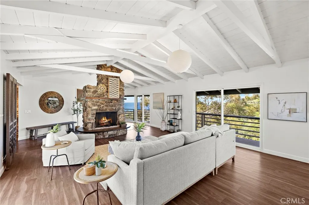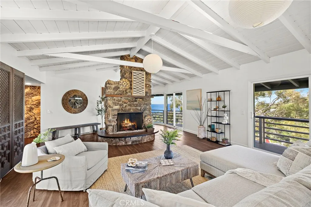 Perched at the end of a quiet cul-de-sac in the coveted enclave of Mystic Hills, this iconic 1960 mid-century residence showcases breathtaking 270-degree panoramic views of White Water, Coastline, Pacific Ocean, Catalina Island, Laguna Canyon, and the Surrounding Mountains Ranges, all from its premier setting above Downtown Laguna Beach. Spanning approximately 2,447 square feet on an expansive 9,520 square-foot terraced lot, this 3-bedroom, 2.5-bathroom home captures stunning views from virtually every room. The main-level wraparound balcony allows you to soak in the breathtaking scenery in complete privacy, while the main-level primary suite offers exceptional convenience. The kitchen is perfectly positioned to enjoy white water ocean vistas and Catalina Island Sunsets that elevate everyday living. The lower level features two additional bedrooms connected by a Jack-and-Jill bathroom, with sliding doors that open to the generous backyard. Ideal for relaxing in nature, soaking in endless views, or hosting holiday gatherings and dinner parties, this outdoor space enhances the home’s seamless indoor-outdoor flow. Each bedroom showcases unforgettable scenery, creating a true coastal retreat experience. Rich with authentic mid-century character, the home features its original fireplace, beautifully exposed beams, and architectural details that celebrate the era’s timeless design. This is a rare opportunity for a mid-century enthusiast to thoughtfully restore and customize a classic — or for a developer to capitalize on the generous lot size, with potential to build a new construction residence of 4,000+ square feet. Conceptual renderings by local Laguna Beach architect Leigh Snow are available in the listing supplements, offering an inspiring vision of the property’s full potential. Enjoy endless coastal/canyon views and close proximity to Laguna Beach High School, downtown Laguna Beach, Laguna Canyon, the beloved Sawdust Art Festival, Festival of Arts, and Main Beach — along with world-class dining, shopping, and coastal living at its finest. Opportunities like this are exceptionally rare. Don’t miss your chance to own or reimagine a true Laguna Beach legacy property.