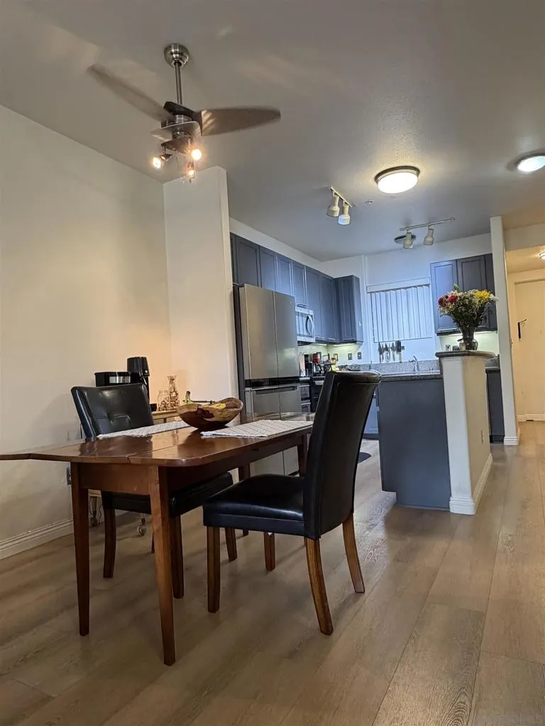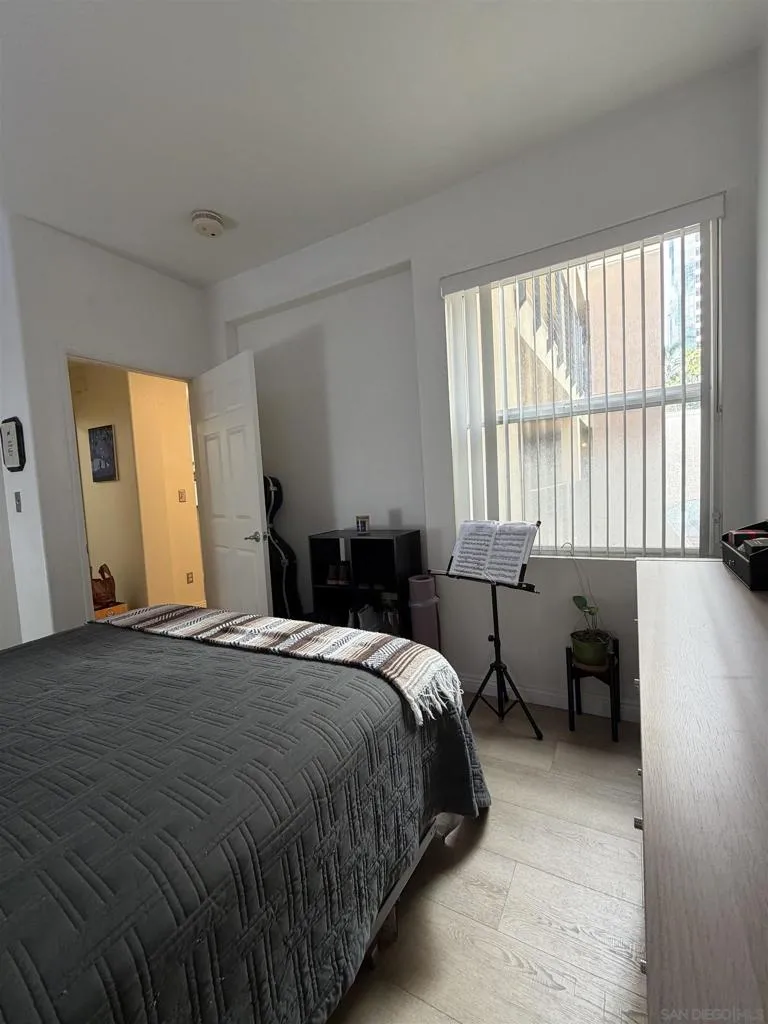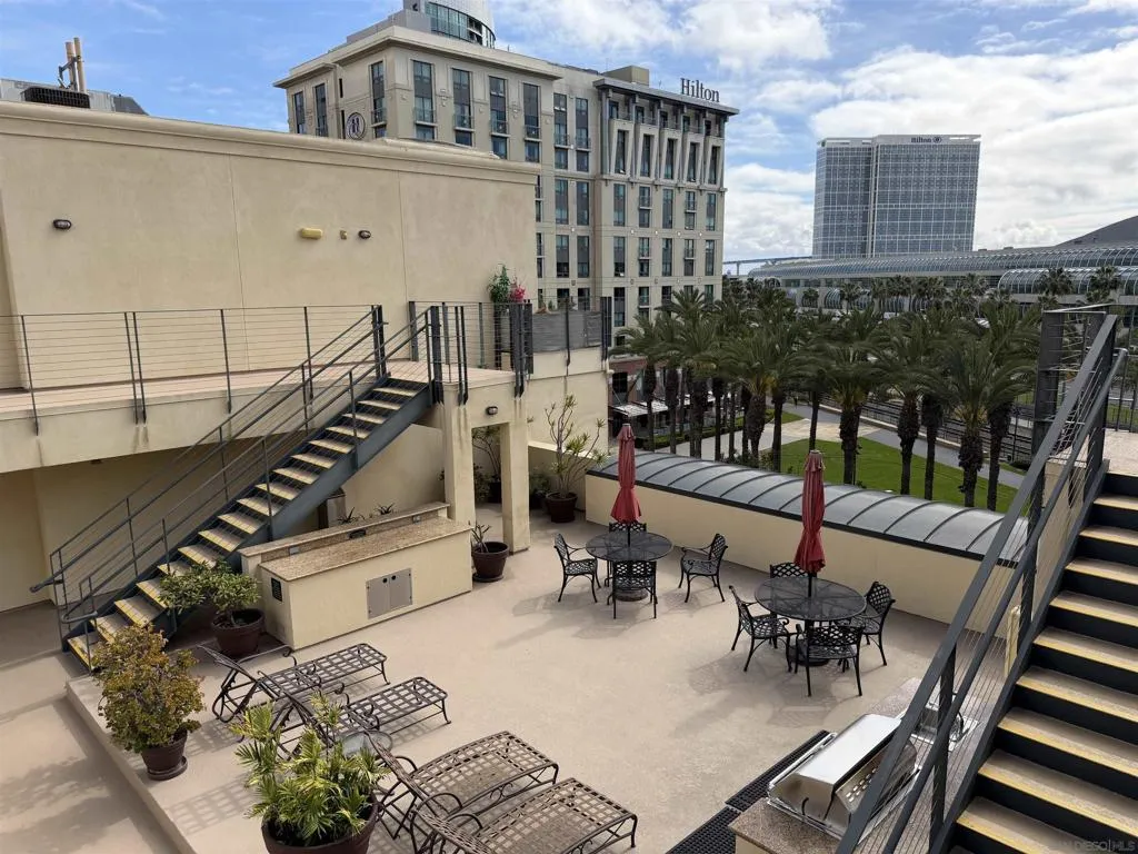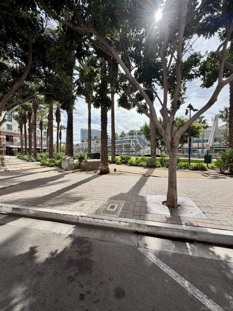 Experience luxury urban living in San Diego’s prestigious Marina District, directly across from the Convention Center. Gorgeous, bright, & remarkably quiet 2-BR, 2-bath offers a thoughtfully designed open floor plan ideal for modern living & entertaining. Spacious primary suite features a beautifully tiled flooring, & a generous walk-in closet. Wide-plank flooring, stainless steel appliances, granite countertops, & abundant cabinetry enhance the well-appointed kitchen. Oversized windows fill the home with natural light, while the private balcony, with its own storage closet, offers a pleasant outlook & seamless indoor-outdoor living. Additional highlights include central heating & brand-new air conditioning, ceiling fans, stacked washer & dryer, & two assigned parking spaces in a secure garage. Residents enjoy resort-style amenities including, fully equipped fitness center, landscaped courtyard, community & game room, meeting room, rooftop lounge with BBQ area & impressive city views. The electronically secured building features controlled access, two elevators, stairwells, & a conveniently located trash chute. HOA dues include water, sewer, trash, common area maintenance, & high-speed Google Fiber internet, creating a truly turnkey downtown lifestyle opportunity. Step outside & enjoy the best of downtown San Diego, Petco Park, Gaslamp Quarter, waterfront, Seaport Village, Trolley Station, Rady Shell at Jacobs Park, & countless restaurants, entertainment venues are all just minutes away. Balboa Park, San Diego Zoo, beaches, & medical centers are accessible.
