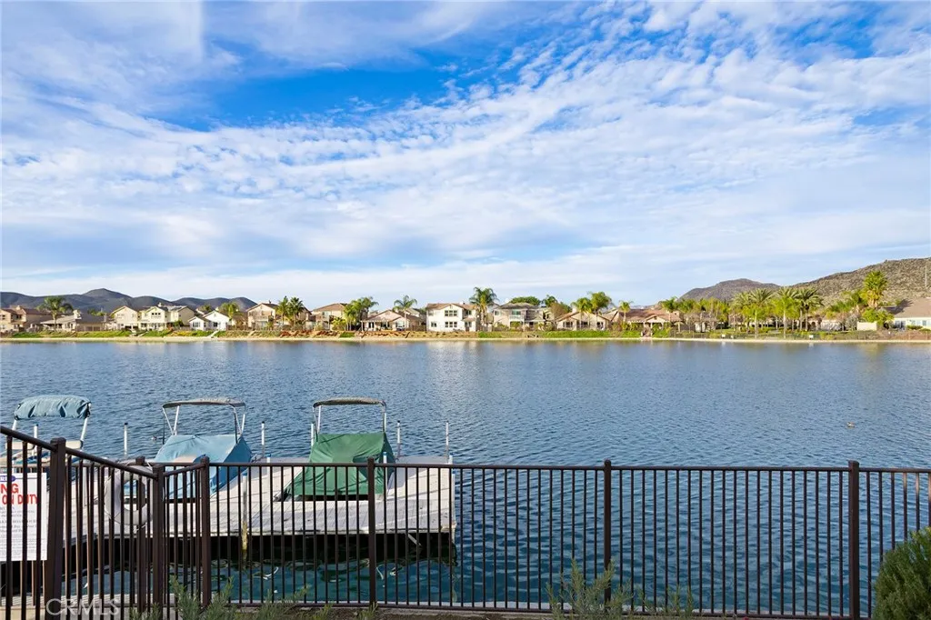 Assumable VA loan at 4.5%! This newly listed and beautifully upgraded home in the private, gated community of Tierra Shores is not to be missed! Steps away from the stunning lake! Upon entry, you are greeted by a stunning glass-leaded front door and cathedral ceilings that create an open, grand atmosphere in the formal living and dining areas. Gorgeous LVP flooring throughout adds a touch of elegance and warmth. The upgraded chef’s kitchen features quartz countertops that perfectly complement the backsplash and stainless steel appliances. It seamlessly opens to the dining area and family room, complete with a cozy fireplace and sliding patio doors that lead to a serene backyard. An Alumawood patio cover with fans, providing ample shade for relaxing on warm summer days. Upstairs, the expansive primary suite includes an adjoining bathroom with dual sinks, a walk-in shower, and a separate soaking tub. Three additional well-proportioned bedrooms share a convenient Jack-and-Jill bathroom. Additional highlights include a spacious indoor laundry room and a 3-car tandem garage, adding both convenience and functionality to this thoughtfully designed floor plan. Living in Tierra Shores offers access to a scenic lake, clubhouse, pool, and more; all within a secure gated community. Conveniently located near Domenigoni Parkway, I-215, shopping, and Mt. San Jacinto College, this home perfectly combines comfort, style, and community.