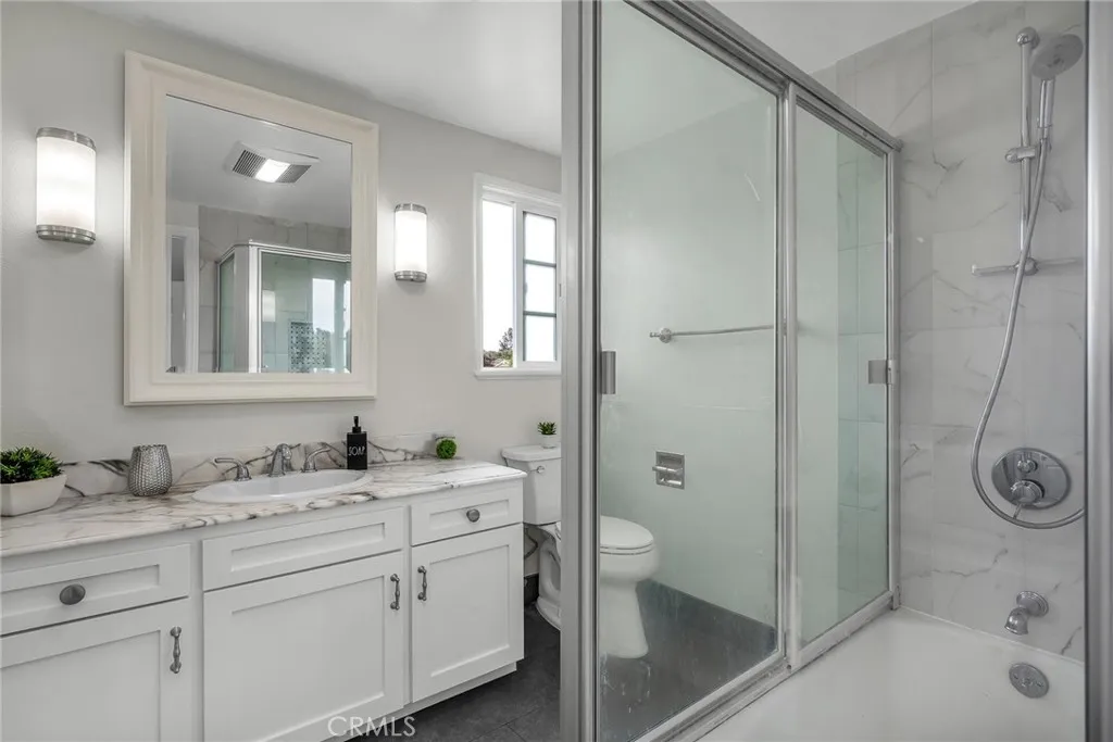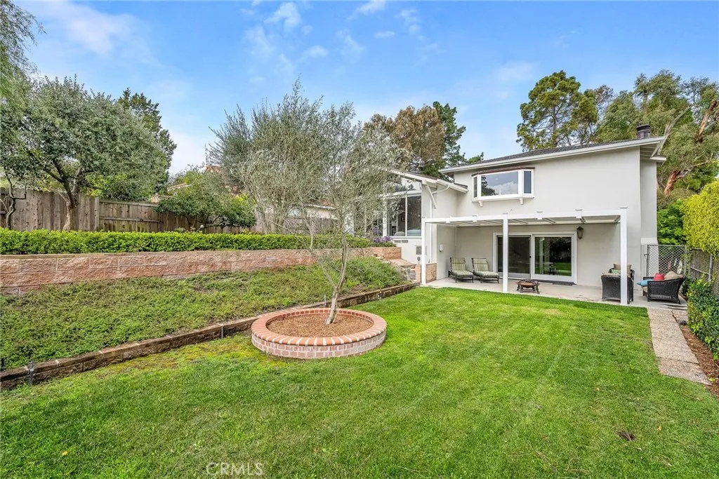 Beautifully remodeled Mesa Palos Verdes home filled with sunshine and ocean breezes, and offers 4 spacious bedrooms, 3 bathrooms, approximately 2,374 SqFt of living space on a generous 9,000 SqFt lot! This great split-level floorplan features a welcoming double-door entry with foyer, a large living room, open dining room, and a sunny kitchen with breakfast nook on the main level. Just half a flight up are three bedrooms including the primary suite, and half a flight down are the family room, bedroom, bathroom, and laundry area. The updated kitchen Has freshly painted cabinets with new hardware, new stainless steel appliances including French door refrigerator, cooktop with downdraft, dishwasher, built-in microwave, sink, faucet, garbage disposal, newer double oven, LED lighting, island seating, and a breakfast nook with sliding door to a charming patio overlooking the lush backyard and fruit trees. The expansive living room boasts cathedral ceilings, PV stone fireplace, slider to the alfresco patio, and a dramatic floor-to-ceiling wall of glass framing the backyard. The open dining room is ideally located and has a new chandelier. The huge family room downstairs offers a large glass slider to the patio and grassy yard, a white brick fireplace with bench/hearth, and recessed LED lighting, with an adjacent bedroom, remodeled bathroom, and laundry area. Upstairs, the primary suite features a generous bedroom with bay window overlooking trees and yard, plus a tastefully remodeled bathroom with white granite countertops and dual sinks; two additional light-filled bedrooms are perfect for kids or a home office. The hallway bathroom is also remodeled with white granite and tile. Located on a hilltop just minutes from Peninsula Center, Promenade Mall, Ralph’s on Hawthorne, Golden Cove Shopping Center, and scenic coastal spots. This home also enjoys access to award-winning schools including Soleado Elementary, Ridge Crest Middle (less than ½ mile), and Peninsula High. There are multiple grocery options only a few minutes away. Additional highlights include a 2-car garage with direct access, auto roll-up door, 220V for easy EV charging setup, and new steel side door. Recent upgrades feature a new Presidential lifetime roof, new interior paint, gorgeous glued-down LVP flooring with lifetime warranty, new air conditioning unit, new interior wrought iron railing, all-new LED lighting, and new electrical switches and outlets with screwless cover plates.