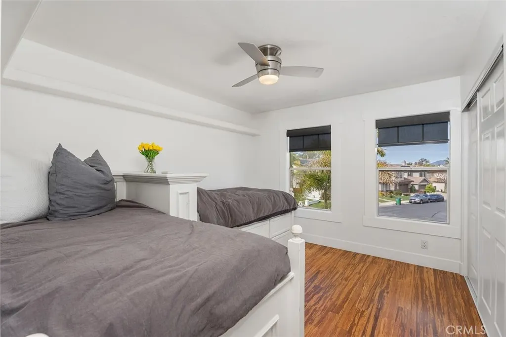 Welcome to your private Balinese-inspired retreat—where luxury, tranquility, and modern efficiency meet. Tucked away at the end of a quiet cul-de-sac on an oversized lot, this stunning 2,609 sq ft home offers 4 spacious bedrooms (one currently converted to an office), 3 full bathrooms, a large loft, and an additional versatile flex space perfect for a home office, gym, or media room. From the moment you enter, you’ll notice the warm, resort-style ambiance paired with high-end contemporary finishes. The beautifully designed kitchen is a true showpiece, featuring custom Cleaf cabinetry, upgraded Bosch appliances, and sleek Dekton countertops that continue throughout the home, delivering both durability and refined elegance. Upstairs, bamboo flooring flows seamlessly through the staircase and entire upper level, adding warmth and a natural, organic feel that perfectly complements the home’s Balinese inspiration. The expansive loft provides flexible living space ideal for a second family room or creative studio. Designed for comfort and peace of mind, the home has been fully re-piped with PEX plumbing and includes owned solar panels for energy efficiency and long-term savings. The garage is EV-ready, powered for electric vehicle charging. The oversized backyard is your own personal oasis that offers exceptional space and privacy, which includes a built in gas fire pit and is highlighted by a luxurious oversized spa with a tranquil waterfall feature—perfect for relaxing evenings or entertaining under the stars. This home combines the best in design, privacy, and functionality, offering the ideal setting for those who appreciate the finer things in life. Don’t miss your opportunity to own this one-of-a-kind property!