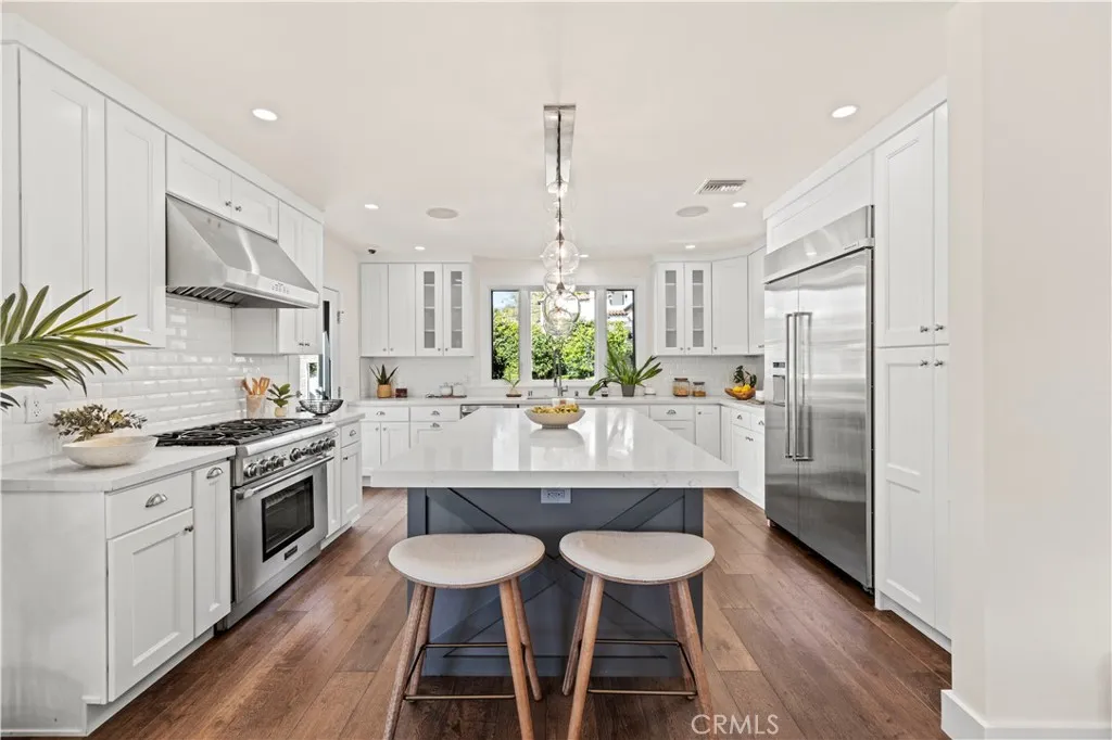 Neatly tucked away in the Rossmoyne neighborhood of Glendale this 4 Bedroom 4 bath home offers unparalleled luxury and comfort in every corner. This residence is a true masterpiece, showcasing a seamless blend of style, sophistication, and meticulous craftsmanship. Step inside to find a spacious, open floor plan with natural light pouring in through large windows. The inviting living room features elegant, high ceilings and a cozy fireplace, perfect for relaxing or entertaining guests. Tastefully designed, the home boasts premium finishes including stunning hardwood floors and designer light fixtures throughout. The chef’s kitchen is a dream come true – with gorgeous cabinetry, gleaming quartz countertops, and top-of-the-line stainless steel appliances. The expansive center island offers ample space for meal prep, while the adjoining dining area is ideal for family meals or dinner parties. The master suite is a true retreat with a grand walk-in closet with center island. The en-suite bath features a spa-like atmosphere with a soaking tub, walk-in shower, and dual vanities, creating a perfect sanctuary to unwind. Each additional bedroom is generously sized, offering plenty of room for family or guests. The office features built-in cabinets for those who work from home or want to have a library/reading room. The backyard is your own private oasis with sparkling pool, outdoor kitchen and BBQ area that includes 2 grills, wine coolers, and your very own pizza oven. The retractable awning can be useful on those hot California summers when you need to get some reprieve from the sun. Built-in Table and perfect for entertainment. A large 180 Sq Ft, Air-Conditioned Bonus room is perfect as a play room or a private space to unwind and get your creative juices flowing. The finishing touch to this remarkable home is the outdoor stone fireplace and playground, rounding out the perfect experience you’ll enjoy everyday if this is your home. Don’t miss out on this exceptional opportunity to make it your dreams come true!