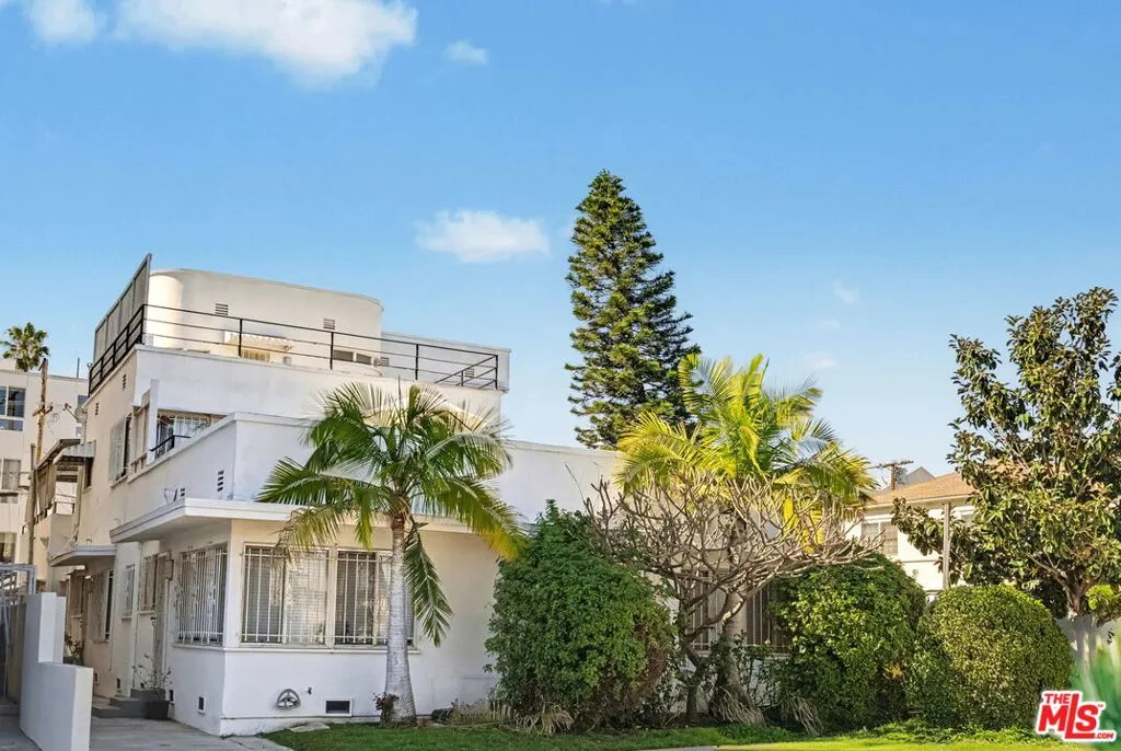 Architectural 1936 Streamline Moderne four-unit corner property in prime Beverly Grove, offering a rare combination of character, scale, and flexibility. Situated on a 6,674 sq. ft lot, the 4,816 sq. ft building features strong curb appeal with curved facade lines, horizontal steel window detailing, and a dramatic stairwell element rarely found in properties of this size.The property consists of four spacious units, including two units delivered vacant at close of escrow, presenting immediate owner-user or value-add opportunity. The upper two-story vacant unit offers townhouse-style living with generous natural light and direct access to expansive rooftop deck space, creating a unique lifestyle component uncommon in traditional four-plex inventory.Additional features include three one-car garages (one to be delivered vacant), on-site storage structures at the rear of the property, and classic 1930s architectural details throughout. Ideally located just moments from Beverly Boulevard, The Grove, world-class dining, and major employment hubs, this is a rare opportunity to acquire a character corner four-plex with immediate flexibility in one of Los Angeles' most desirable rental submarkets.