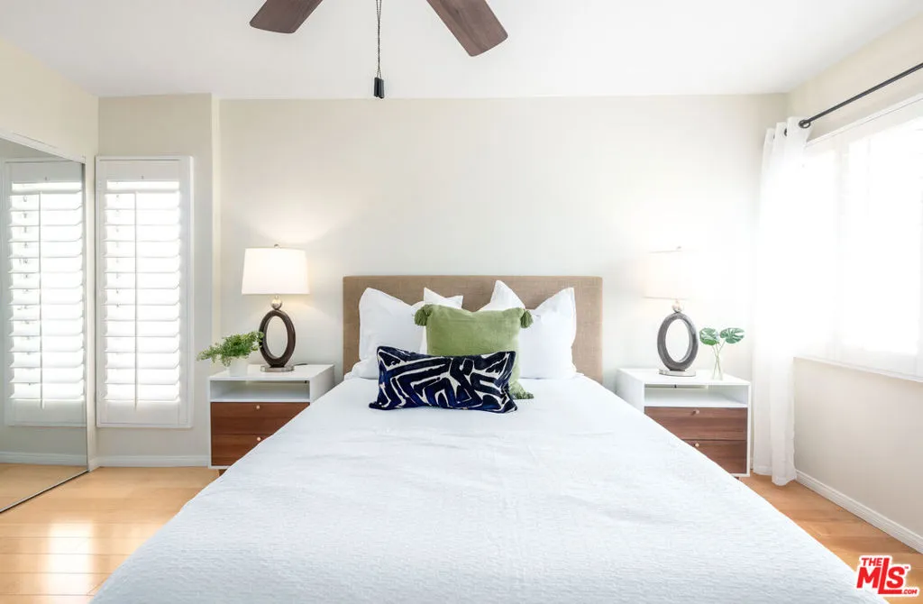 Located in the resort-style Pines complex with its lush grounds and meandering pathways, this captivating top floor corner end unit is an exceptional find in Culver City. Upon entry, take in the bright, minimalist modern living space featuring wood flooring, large pictures windows framing treetop views, clean lines, neutral palettes, and functional, uncluttered space. Enjoy preparing meals in the contemporary kitchen outfitted with shaker cabinets, granite counters, tiled floors, and stainless steel appliances. Down the hallway is the guest bedroom, charming bathroom with Carrera hexagon tiled flooring, and private corner ensuite with a custom double-sided walk-in closet and contemporary bathroom vanity. Additional highlights include an outdoor balcony, plantation shutters, smooth ceilings with recessed lighting and ceiling fans, and separate office/study alcove. Delightful tree-lined neighborhood with a large park and easy access to numerous nearby shopping and dining destinations.