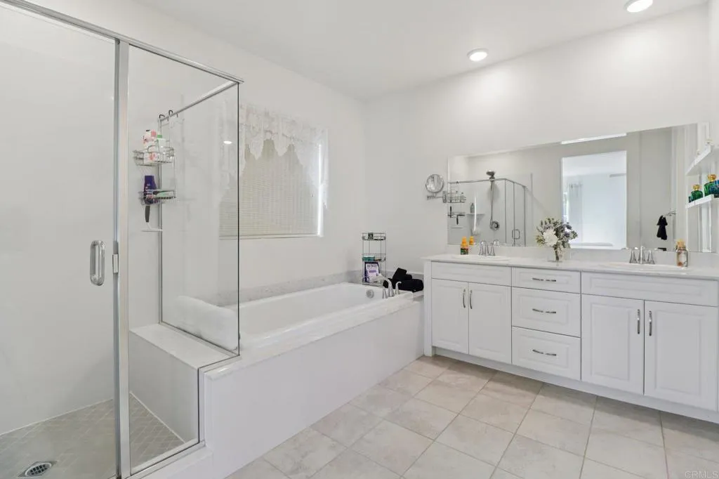 Nestled in the prestigious River Village community, this beautifully upgraded 4-bedroom, 2-bath home offers 2,210 sq ft of refined living space designed for comfort, efficiency, and everyday functionality. Built in 2017 and thoughtfully enhanced, the home features soaring 10 foot ceilings, abundant natural light, recessed lighting, and plantation shutters. Central AC and Heat. The open-concept kitchen is the heart of the home, showcasing quartz countertops, double ovens, a 5-burner gas cooktop, ample cabinetry with pull-out shelving, and soft-close drawers. The spacious primary suite offers a spa-inspired bath with dual vanities, a soaking tub, comfort-height toilets, and a walk-in closet. Enjoy outdoor living in the private backyard covered patio, built-in gas line for BBQ, two pergolas, outdoor lighting, upgraded drainage and irrigation, and a fun pitch-and-putt area. Energy-efficient upgrades include 15 fully paid solar panels, added insulation. The epoxy-finished garage offers EV-ready 30-amp service and additional storage. Ideally located across from Walker Preserve with open views and privacy. Low HOA and close to Santee Lakes, parks, schools, shopping, and trails. Move-in ready and packed with upgrades! Don't miss the opportunity to make this beautiful property your dream home! VA/FHA are welcomed!