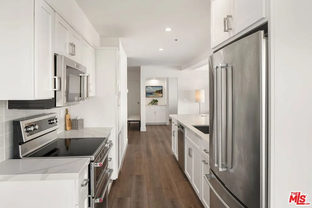Positioned along the iconic Wilshire Corridor, this beautifully updated corner residence at The Longford offers sophisticated living in one of Los Angeles' premier full service buildings renowned for its dramatic floor to ceiling windows that flood each home with natural light. Inside, the residence features 2 bedrooms, 2.5 bathrooms, and a spacious office/den perfect for remote work, a media lounge, or covert to a third bedroom. The open concept layout feels airy and inviting, enhanced by sweeping city views extending toward the Getty Center perched above the Santa Monica Mountains. The primary suite is designed as a serene escape, complete with a walk-in closet and a spa inspired bath featuring dual vanities and an oversized walk-in shower. The bedroom also includes newer custom closets, providing both elegant design and exceptional storage. A dedicated laundry room is equipped with newer side-by-side washer and dryer for ultimate convenience. Additional highlights include two side-by-side parking spaces, storage and the exceptional service and amenities of this luxury high-rise. Ideally located moments from UCLA, upscale shopping and dining, and offering easy access to Century City, Beverly Hills, Silicon Beach, and major freeways, this home places you at the center of Westside living. Experience refined comfort, panoramic views, and effortless convenience all in one exceptional residence.