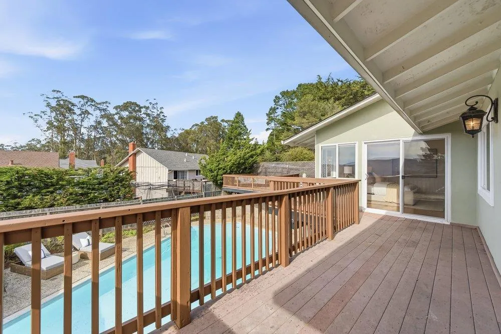Nestled above the coastline in coveted Park Pacifica, 1179 Park Pacifica captures the kind of sweeping views that make you pause mid-sentence. Ocean air, rolling hills & dramatic mountain vistas unfold from nearly every angle: a backdrop that feels both expansive & grounding. Floor-to-ceiling windows line the living & dining, framing the mountains like artwork. Natural light pours in throughout the day, shifting beautifully from soft morning glow to golden-hour drama with seamless dialogue between indoors & out. Spanning 5 bedrooms & 3 full bathrooms, the home offers both scale & versatility. A gracious living room welcomes you with openness & volume, while a separate family room downstairs provides a more relaxed retreat, ideal for movie nights, game days, or quiet evenings in with a fireplace that anchors the space. Outside, the pool sparkles- a private escape set against expansive views. A truly rare Pacifica offering: coastal climate, open sky & your own resort-style setting. A 2-car garage completes the home, adding practicality to a property that so seamlessly blends lifestyle & location. Just moments from iconic beaches, coastal trails, and beloved cafes & shops. Elevated, light-filled & view-forward: 1179 Park Pacifica Drive is Pacifica living at its most compelling.