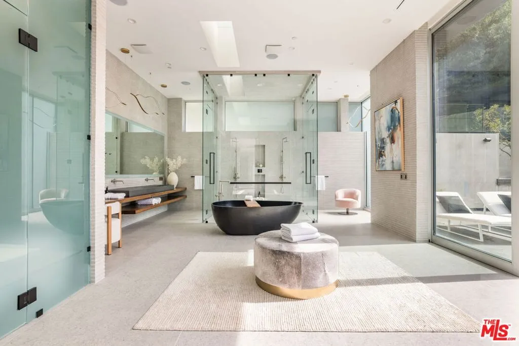 A rare offering in Bel Air, this newly constructed gated estate pairs architectural ambition with complete privacy and resort-caliber amenities. Designed as a true compound, the home unfolds across approximately 18,500 square feet with 7 bedrooms and 16 bathrooms on a 29,883-square-foot lot surrounded by hillside views and mature landscape.A double-height foyer sets the tone, leading into a grand great room where retractable walls of glass create seamless continuity between interior living spaces and the central courtyard. The chef's kitchen is both sculptural and highly functional, appointed with refined Italian cabinetry, a dedicated galley and two oversized islands finished in exotic stone and live-edge Brazilian redwood. Professional-grade appliances include gas and induction cooktops, double ovens and full refrigerator and freezer columns with stainless interiors.Entertaining is thoughtfully layered throughout: a grand family room anchored by a purpleheart wood bar, a temperature-controlled glass wine cellar accommodating over 1,000 bottles and a private cinema with stadium seating for 20 and a 200-inch screen. A dedicated wellness wing features a fitness studio and Roman-style bath with steam and hydrotherapy elements.Upstairs, the approximately 2,700-square-foot primary suite offers the scale and privacy of a standalone residence, complete with dual boutique-style closets, sitting room, office, fireplace, terrace and a spa bath with double rain showers, steam, soaking tub and separate water closets.The grounds center on a terraced pool and spa with waterfalls, stepping stones, a swim-up bar and fire pit lounge. A detached 1,300-square-foot guest house (ADU) with two bedrooms, three baths, full kitchen, rooftop deck and wraparound balcony completes this exceptional Bel Air estate.