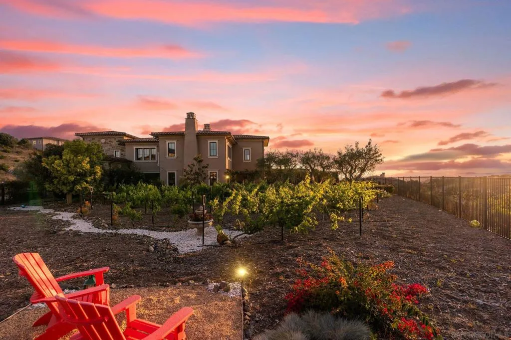 VRM $3,950,000 - $4,150,000 La Dolce Vita... a farm-to-table property in Cielo! Perched on a coveted view lot in the gated community of Cielo, this custom built home is a perfect blend of quality craftsmanship and relaxed California living. With 180-degree panoramic views stretching from the Pacific Ocean to the snow-dusted mountains, the setting is both private and breathtaking. Designed for those who appreciate quality and tranquility, the home sits on an expansive lot offering a unique opportunity to build a detached Casita or ADU (currently a producing vineyard). Sellers will convey recent HOA-approved plans for a stunning pool, spa and entertainment area, which can be implemented for construction immediately. Inside, the residence unfolds with a warm, light-filled, open-concept floor plan allowing for seamless living from one space to the next while blending a warm craftsman contemporary style. At the heart of the home is a chef’s dream kitchen—appointed with multiple premium Viking appliances, a back kitchen and pantry, leathered Taj Mahal quartzite dual islands that can accommodate over 20 guests for dining and a temperature-controlled wine cellar. The primary suite located on the second floor, takes in sweeping coastal and mountain views. Four additional guest rooms are all en-suite and anchored by an upstairs game or media room for the entire family to enjoy. VRM $3,950,000 - $4,150,000 La Dolce Vita...a farm to table property in Cielo! Perched on a coveted view lot in the gated community of Cielo, this custom home is a perfect blend of quality craftsmanship and relaxed California living. With 180 degree panoramic views stretching from the Pacific Ocean to the snow-dusted mountains, the setting is both private and breathtaking. Designed for those who appreciate quality and tranquility, the home sits on an expansive lot offering an unique opportunity to build a detached Casita or ADU (currently a producing vineyard). Sellers will convey recent HOA approved plans for a stunning pool & spa, shovel ready. Inside, the residence unfolds with a warm, light-filled, open-concept floor plan allowing for seamless living from one space to the next, blending a warm craftsman contemporary style. At the heart of the home is a chef’s dream kitchen appointed with multiple premium Viking appliances, back kitchen and pantry, leathered Taj Mahal quartzite dual islands which can accommodate over 20 guests for dining and a temperature controlled wine cellar. The primary suite located on the second floor, takes in sweeping coastal and mountain views, additional (4) guest rooms are all en-suite and anchored by a upstairs game or media room for the entire family to enjoy. Step outside and take in the golden hour from one of the many outdoor living areas. Whether hosting guests for al fresco dinners or enjoying quiet moments beneath the stars, this property was made for indoor-outdoor living. It features a trellised dining area with raised vegetable garden boxes, an outdoor loggia with a fireplace, and a private vineyard to produce your own boutique Pinot Noir. Cielo residents enjoy access to resort-style amenities including a fully equipped fitness center, clubhouses, tennis and pickleball courts, playgrounds, and sports courts. Community events throughout the year create a lively, connected lifestyle. This is an accredited Fire Safety and Shelter in Place community with its own Fire Department and emergency equipment on property, combining safety and luxury at all times.