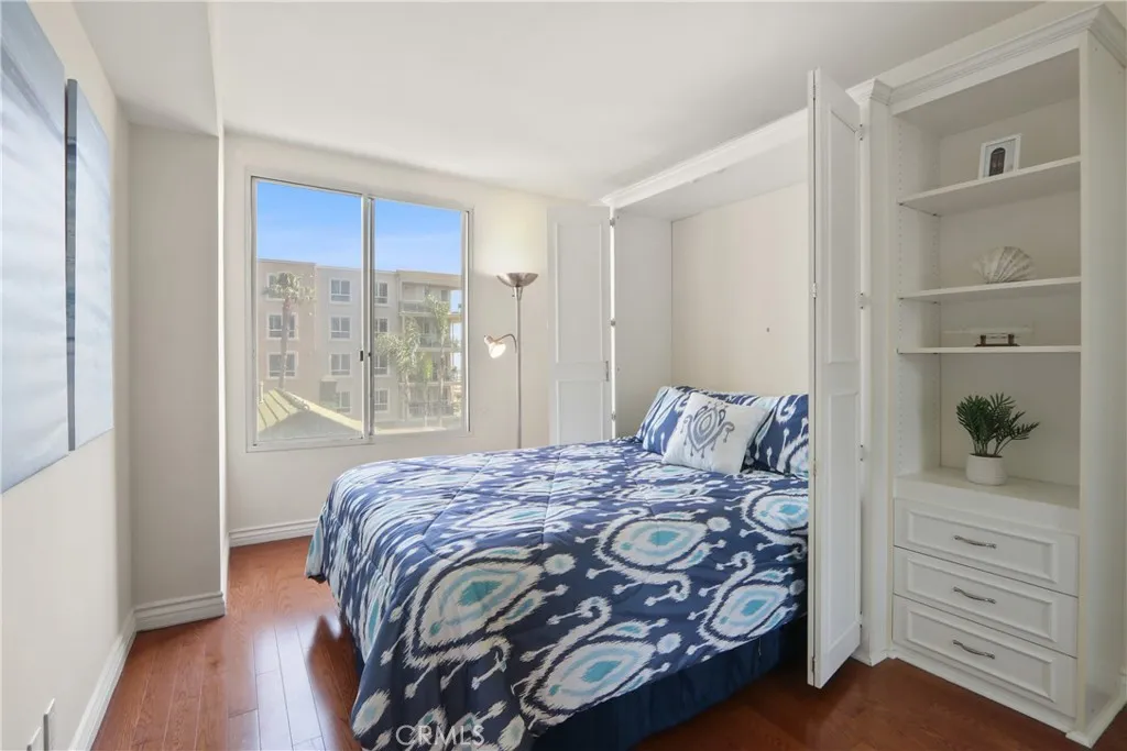 Welcome to The Pacific, a luxury high-rise with stunning ocean views. This secure, 24/7 concierge-serviced building delivers resort-style living with direct access to the beach, a state-of-the-art fitness center, pool, spa, beach front fire pit, bbq area, and banquet/meeting room. This 3rd floor, 2 bedroom, 2 bathroom condo features hardwood floors and a private balcony off the living room, perfect for enjoying the ocean view. The kitchen is equipped with granite countertops, stainless steel appliances, including an oven, and dishwasher, combining style and performance. The spacious primary suite features custom closets and an en-suite bathroom designed for comfort, complete with a walk-in soaking tub, separate shower, and dual sinks. The secondary bedroom features a Murphy bed, allowing flexibility for a guest room, office, or additional living space. Other features include new paint, inside laundry with full-size washer and dryer, utility closet and storage space. The area is conveniently located near Shoreline Village, restaurants, shopping, and transportation. Experience elevated coastal living in one of the area's most sought-after oceanfront communities.