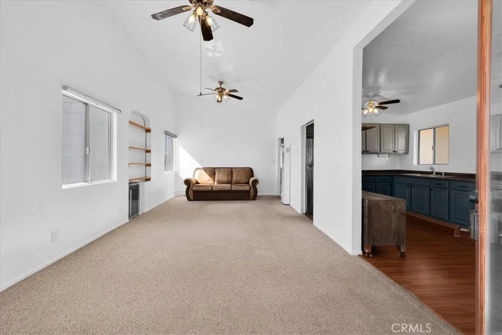 The Ultimate Multi-Generational Joshua Tree Retreat!* Rarely do you find a property that perfectly balances social connection with total privacy. Situated on a sprawling 2-acre lot in North Joshua Tree, this unique estate features two distinct designer homes, offering the ideal setup for a young family with frequent long-term guests, an adult child who visits for the weekend, or a permanent home-office-away-from-home. *The Main Residence: Open, Airy, and Social* The heart of the property is a character-filled 2-bedroom, 1-bathroom home designed for gathering. Step through the front door into an expansive living space defined by high ceilings, natural light, and a seamless flow. The large kitchen was built for entertaining, ensuring the "cook" is always part of the conversation. The home is rounded out by a freshly updated modern bathroom and two serene bedrooms, each equipped with individual mini-split systems for personalized climate control. A dedicated bonus room serves as the ultimate flex space—perfect for a home office, a high-end home gym, or a quiet art studio. *The Guest Suite: A Private Oasis* Just steps away sits the crown jewel for your visitors: a modern renovated shipping container tiny home. This isn't just a guest room; it’s a self-contained sanctuary. With its own kitchenette, a stunning modern bathroom with a tiled walk-in shower, and a private deck, your adult kids or long-term guests can enjoy their own morning coffee and desert views without ever disturbing the main house. *Outdoor Living on 2 Acres* The "magic" of Joshua Tree is on full display here. The fully fenced lot features mature shade trees and panoramic mountain views. With multiple deck patios, you have plenty of room for alfresco family dinners under the stars or quiet sunset cocktails. Whether you’re looking for a family compound or a stylish desert basecamp with room for everyone to spread out, this rare dual-dwelling property is ready for its next chapter.