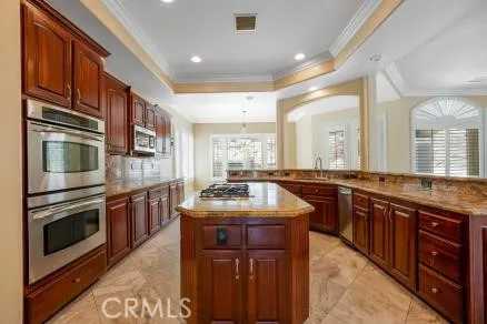 One of the custom build home in this prestigious neighborhood featured 4 Bedrooms and 4 Full Bathrooms, 3,703 sf of living space, 0.54 Acres (23,522 sf) of lot size. Office and full Bath main floor with Large Kitchen surrounded by the Large formal dining room, Breakfast Nook area and Family room with fireplace. Kitchen featured custom cabinetry and granite countertop, pantry. Vaulted ceiling with crowned molding. Top floor featured a Master Suite, plus another 3 Bedrooms and 2 Bathrooms, Huge Loft/Entertainment room with Cabinetry and Countertop with sink/faucet with an entrance to a large balcony for outdoor relaxation and viewing. Backyard is a resort style with water fall, a Tiki Hut Patio with build in BBQ. It's a 3 Car Garage. Beautifully Landscaped with rounded water fall for drive around entrance.