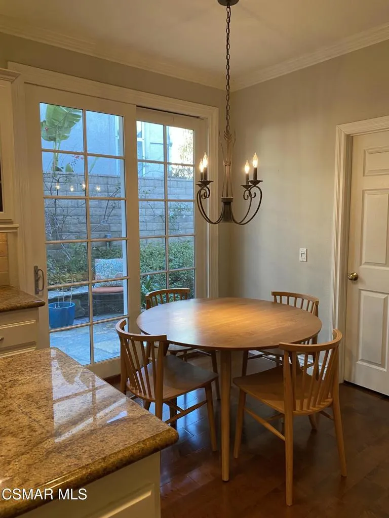 Nestled in the highly desirable Lang Ranch neighborhood of Thousand Oaks, this exceptional home blends style, comfort, and an unbeatable setting. Situated on a peaceful 14,374-square-foot lot, the property welcomes you through a charming gated courtyard that sets a warm and inviting tone.Inside, natural light fills the thoughtfully designed layout. Soft neutral tones and elegant flooring create a seamless flow throughout the main living areas. The chef's kitchen offers an eat-in design with a breakfast bar, center island, and generous cabinet and counter space, all overlooking the beautifully landscaped yard. A downstairs bedroom and full bath provide flexibility for guests, remote work, or multigenerational living.Upstairs, the spacious primary suite features a private balcony with scenic views. The spa-inspired bathroom includes dual sinks, a walk-in closet, a frameless glass shower, and a soaking tub designed for relaxation.The backyard is a true retreat, complete with a lush grassy area, mature trees, a screened garden, and an expansive patio ideal for gatherings or quiet evenings outdoors. A three-car garage adds even more versatility, with the third bay easily converted into a home office, gym, or creative space.Located near Lang Ranch Elementary, Los Cerritos Middle School, Westlake High School, Oakbrook Plaza, and nearby trails and parks, this home offers convenience along with natural beauty. Experience refined living in one of Thousand Oaks' most sought-after communities. Visit 805leasing.com to learn more or schedule your private showing.