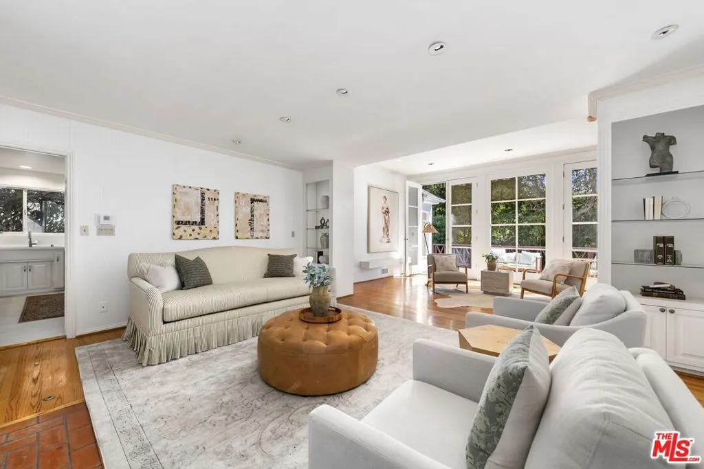 Positioned in a coveted, quiet pocket of Brentwood, this English-inspired traditional pairs classic character with meaningful scale. Set on nearly 11,000 square feet of mature, tree-lined grounds, the property offers both privacy and presence, a combination that is increasingly rare in the neighborhood, with significant potential for value add and future expansion.Spanning over 3,000 square feet with four bedrooms and four baths, the home unfolds with warmth and architectural detail throughout. A formal living room anchored by a timeless brick fireplace introduces the home's understated elegance, while the dining room's custom built-ins add depth and functionality. The heart of the home is a generously scaled family room with its own fireplace, flowing naturally into a sunlit rear living space wrapped in floor-to-ceiling French doors, equally suited for casual dining, a playroom, or a relaxed secondary lounge. The layout balances defined rooms with comfortable connectivity, creating spaces that feel both intimate and open. Three first-floor bedrooms are thoughtfully arranged for privacy, while the spacious second-level primary suite serves as a quiet retreat, complete with its own fireplace and garden outlooks. Along with recently refreshed kitchen and bathrooms offering a modern esthetic. Outdoors, the expansive backyard is framed by lush landscaping and anchored by a pool, offering seclusion while being just moments from Brentwood's premier dining, shopping, and schools. For those seeking additional scale, the property includes fully permitted plans for a new build, eliminating uncertainty and providing a clear path toward a larger vision. Whether enjoyed as it stands or thoughtfully enhanced, this offering represents land, character, and long-term potential in one of the Westside's most enduring neighborhoods.