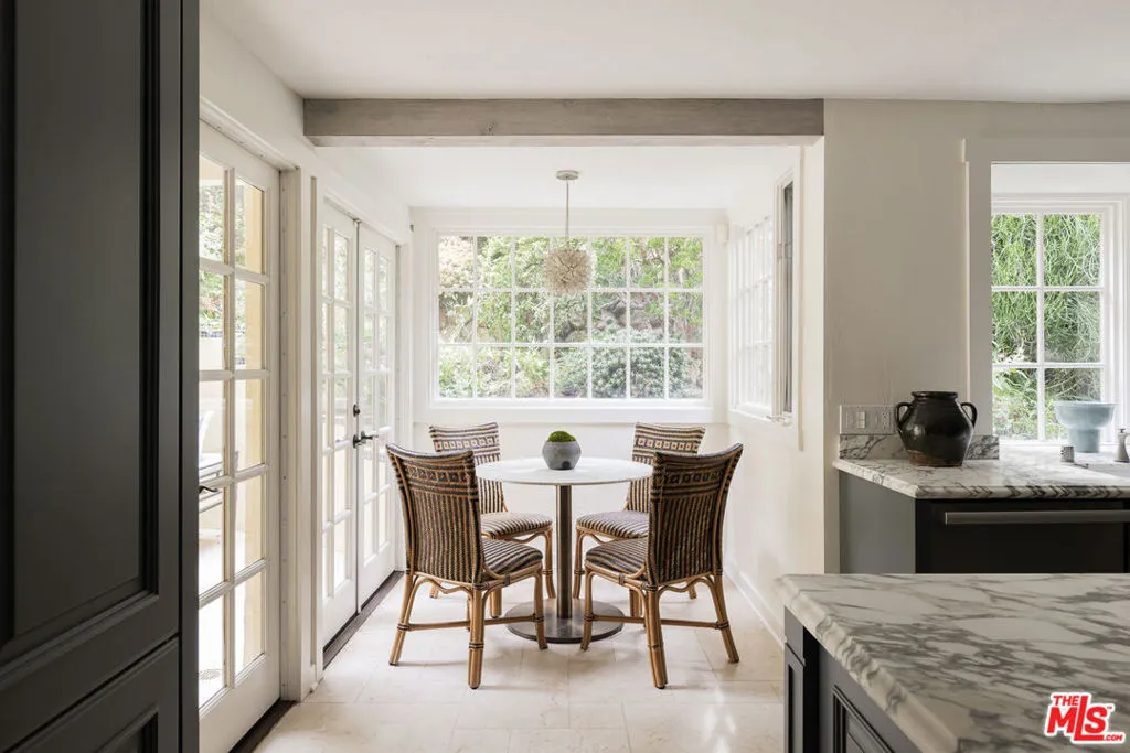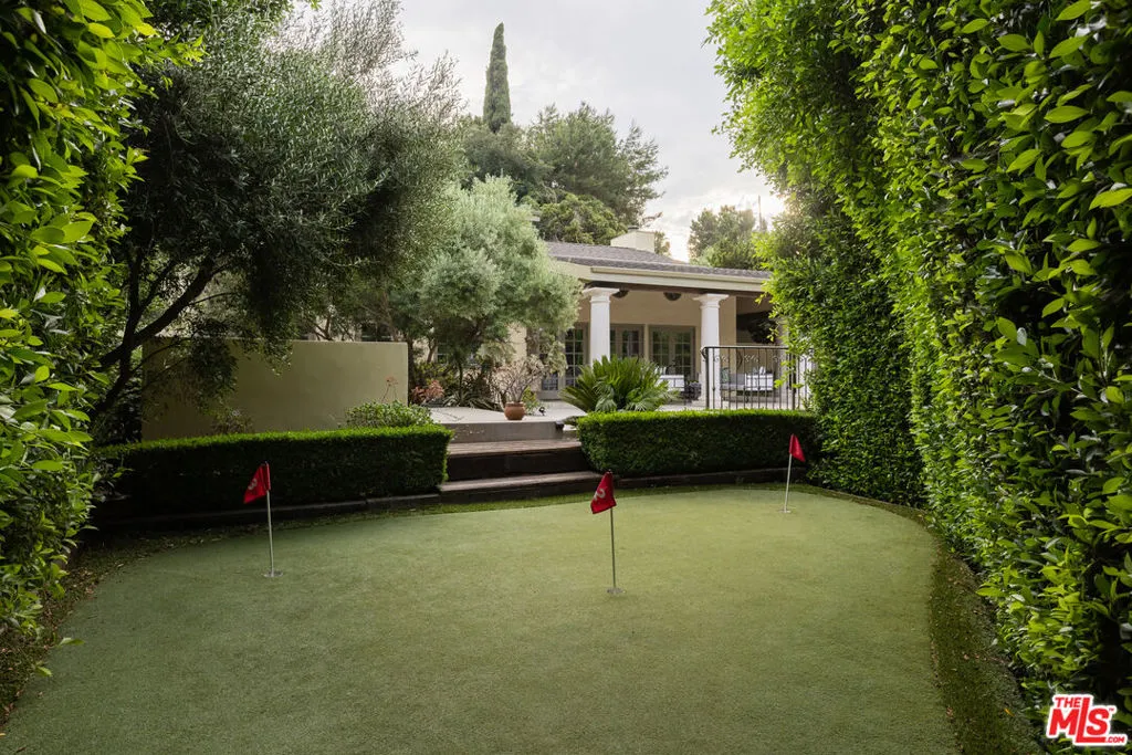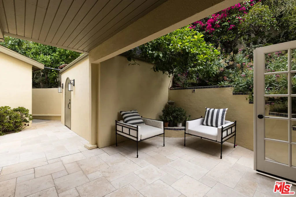 This exceptional Hollywood Hills villa, blending European charm with a contemporary allure, offers a rare, large lot allowing for a secure gated entry and motor court, lush succulent gardens, privacy hedges, an expansive loggia, pool, spa, bbq area, putting green, and fire-pit, all to be enjoyed while absorbing exciting views with front row seats to Universal's July 4th firework display. From the gated driveway, enter the courtyard to find welcoming French doors revealing the formal living area with stone flooring, high beamed ceilings, furniture quality built-ins and a gas burning fireplace ready to soar. A lovely bar area provides a seamless transition to the dining area, where another fireplace creates an intimate ambiance for memorable meals. The center-island kitchen offers gorgeous marble finishes, top-of-the-line stainless appliances and a cozy breakfast nook that bathes in natural light. On the main floor there is a powder room for the service of guests, two en-suite bedrooms, and a laundry room. Upstairs find two additional en-suite bedrooms, with the primary suite offering two closets, one being a large walk-in with cedar lining. The finished garage is equipped with a 240V wall outlet for charging electric cars. The location of this villa is just as enticing as the property itself, easy to reach and conveniently close to major studios, Studio City's renowned dining, shopping and bar scene, Hollywood's vibrant entertainment, and easy freeway and metro access to explore all that greater Los Angeles has to offer.